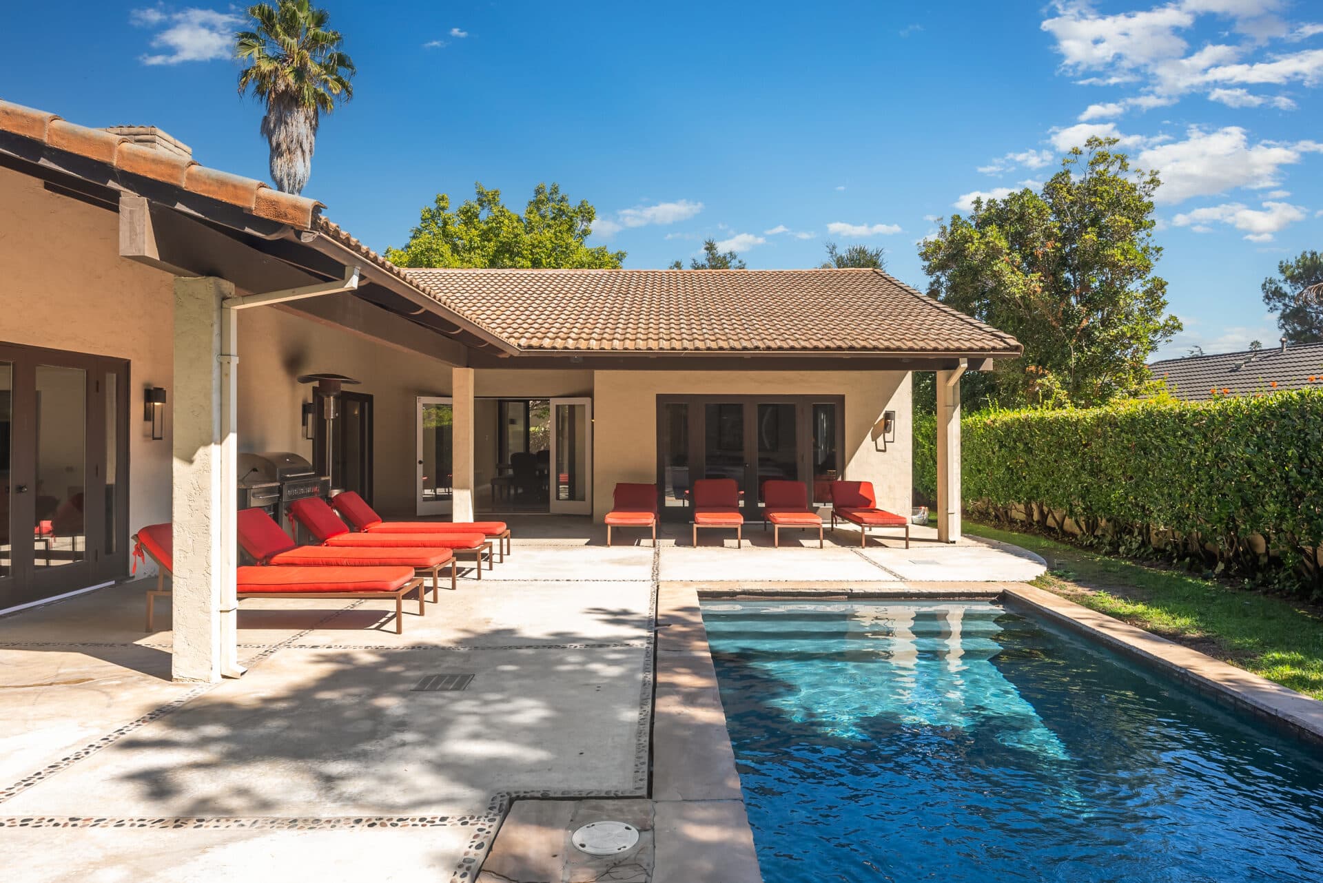 Stunning Spanish-Contemporary for lease in the prestigious Los Feliz Estates, just minutes from iconic studios and the vibrant Sunset Strip. This single-story house seamlessly blends modern amenities with classic architectural charm, featuring an elegant layout with 3 bedrooms and 3 bathrooms in the main house + an attached guest studio complete with full bathroom and kitchenette.