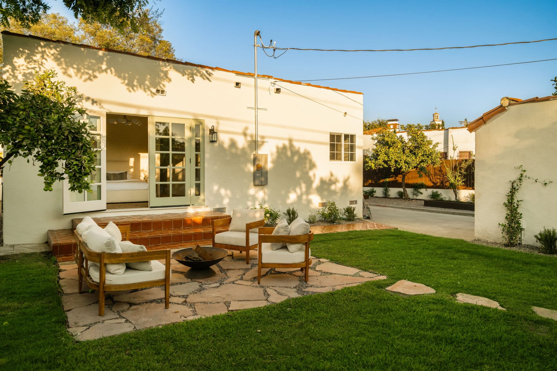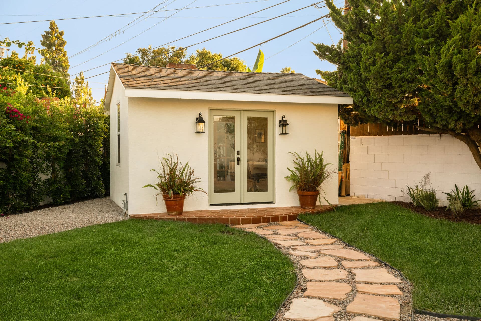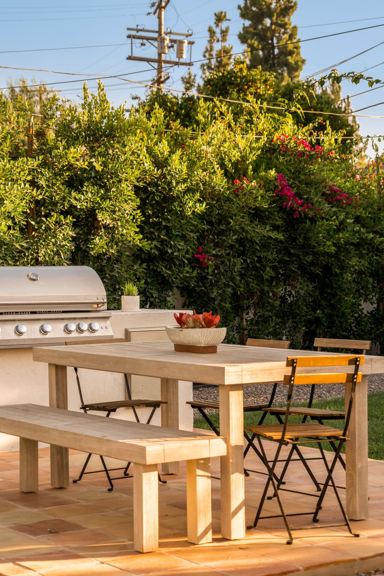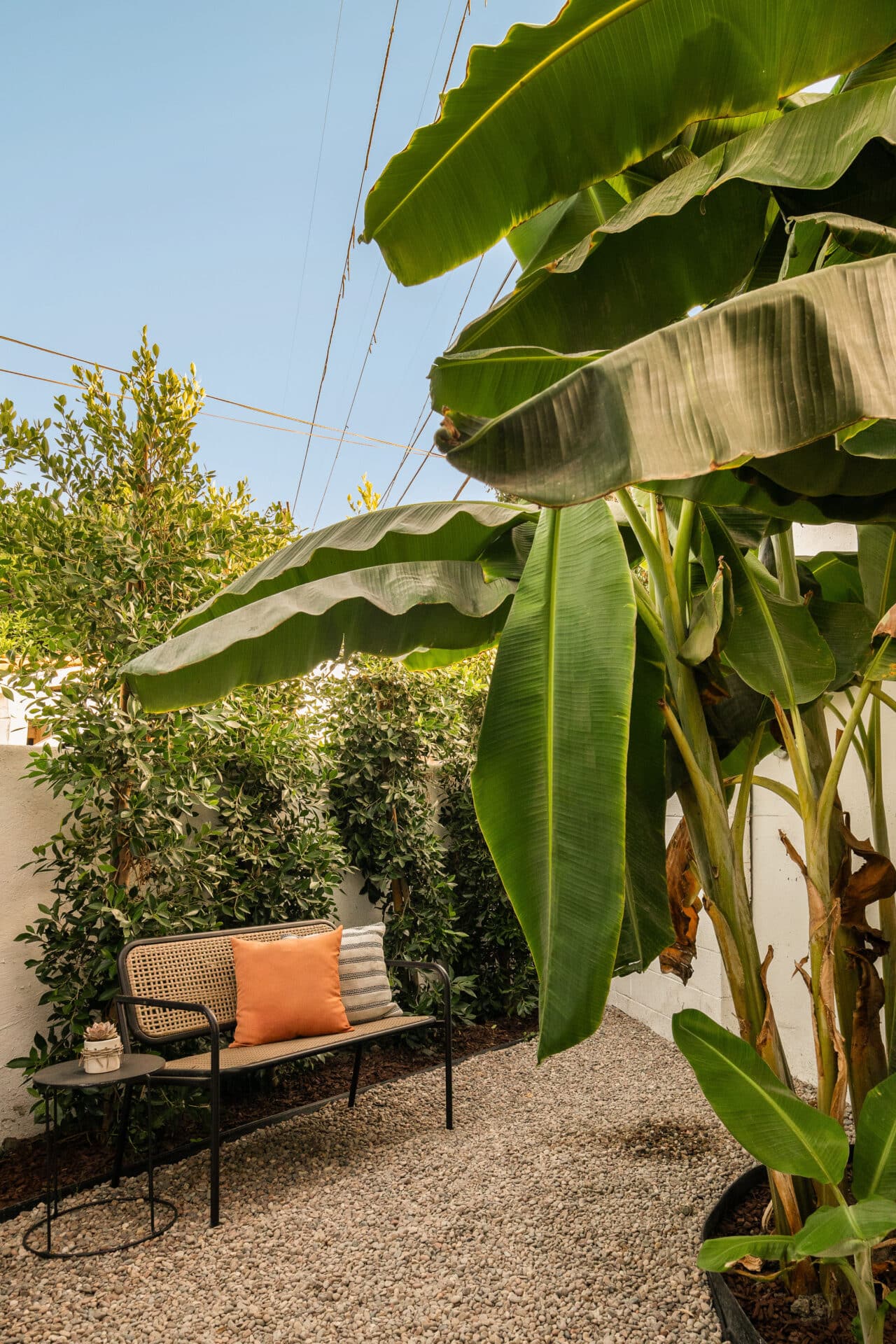 Each of the three generously sized bedrooms is a sanctuary of comfort and style. The primary features french doors to an outdoor patio, dual customized walk-in closets, and an en-suite bathroom with a soaking tub and separate shower. Imagine unwinding in your luxurious suite after a long day, surrounded by the soothing ambiance of the spa-like atmosphere. The additional bathrooms have been thoughtfully designed with eclectic yet cohesive finishes, featuring custom arched showers, authentic Zellige tile, and brushed brass finishes. Step outside to a sprawling outdoor space carefully divided into multiple entertaining and lounge areas, encircled by fruit trees and mature ficus hedging. Wake up to the sounds of birds chirping in your private garden then enjoy a leisurely breakfast with pomegranates picked right from your garden and lemon water with fruit born from your blossoming tree. Satisfy your appetite with produce from your personal farmer’s market with mature fruit trees such as lemon, lime, orange, pomegranate, banana, pepper + more! Multiple planter beds provide more space for herbs + veggies to grow. The newly constructed barbecue area with a 6-burner grill and built-in storage is perfect for hosting al fresco gatherings. Enjoy summer evenings grilling with friends and family, surrounded by the beauty of your own private slice of Los Angeles. The permitted 180 square foot bonus room offers the perfect rec room for entertaining or detached home office. It’s not just the home that makes this property so special.