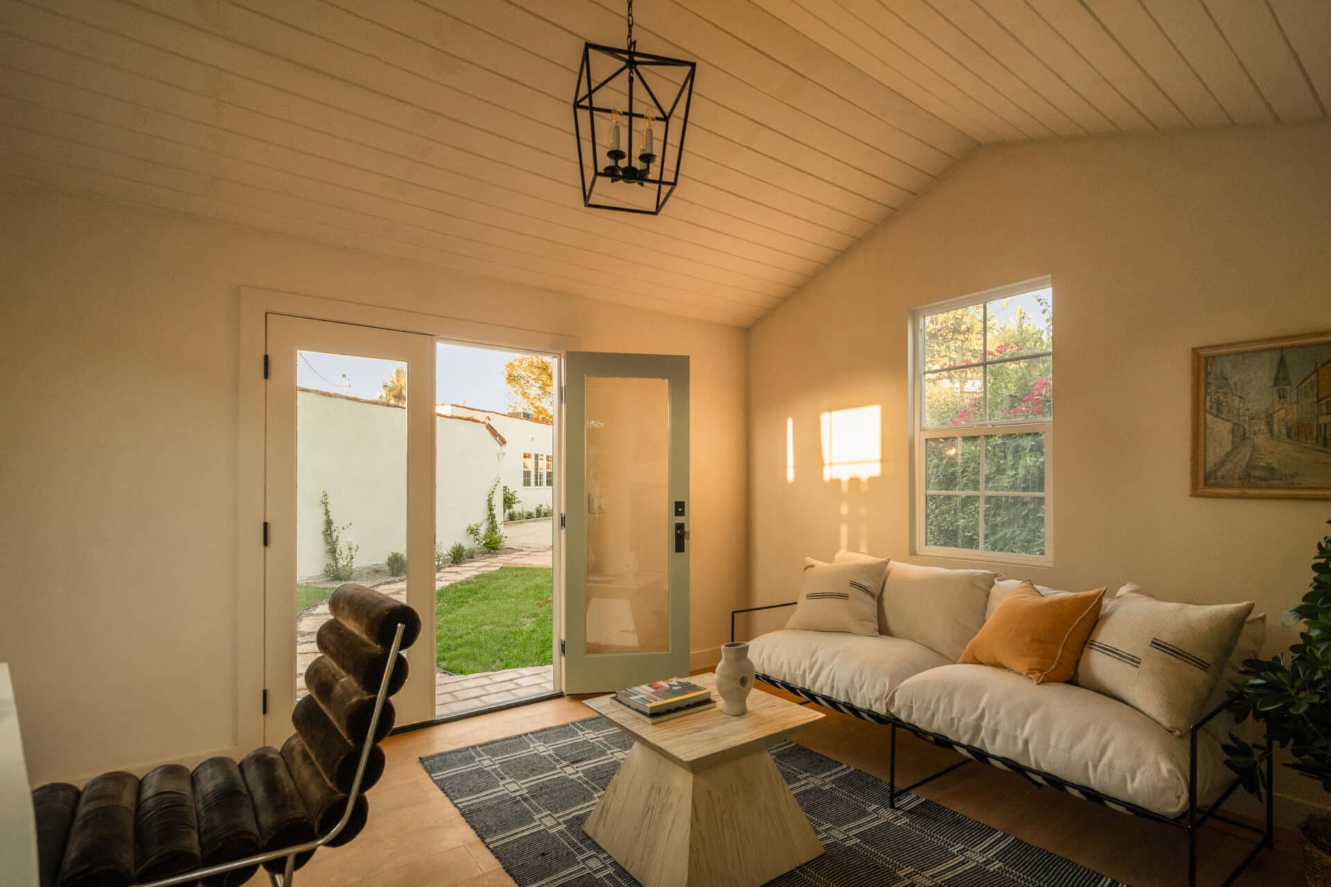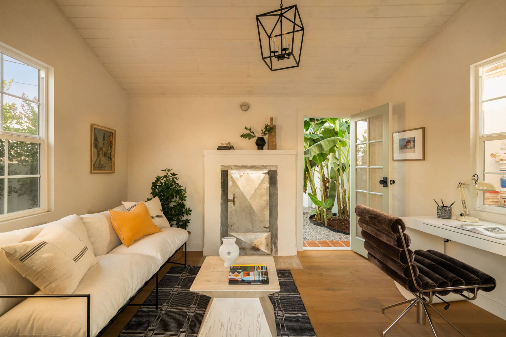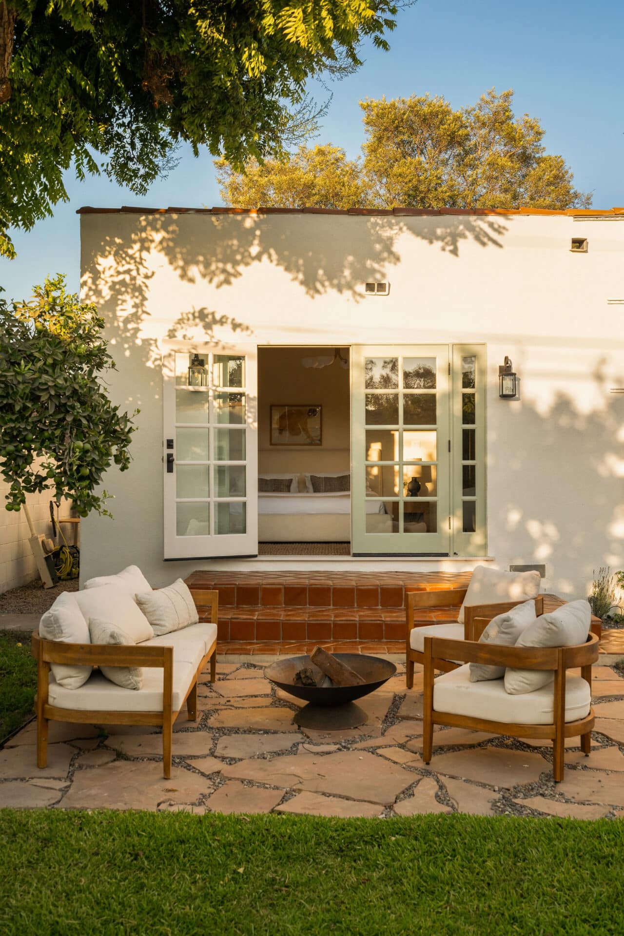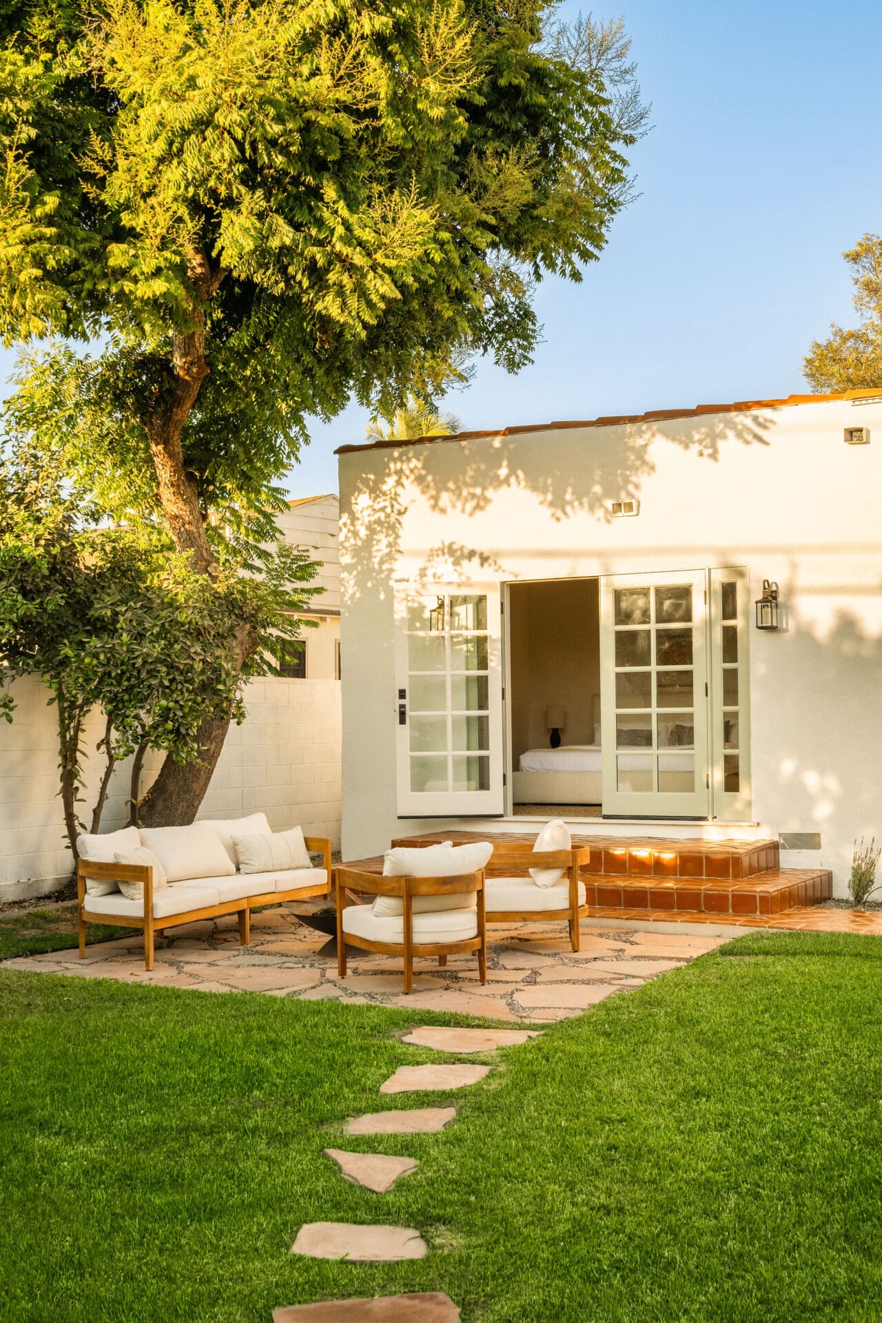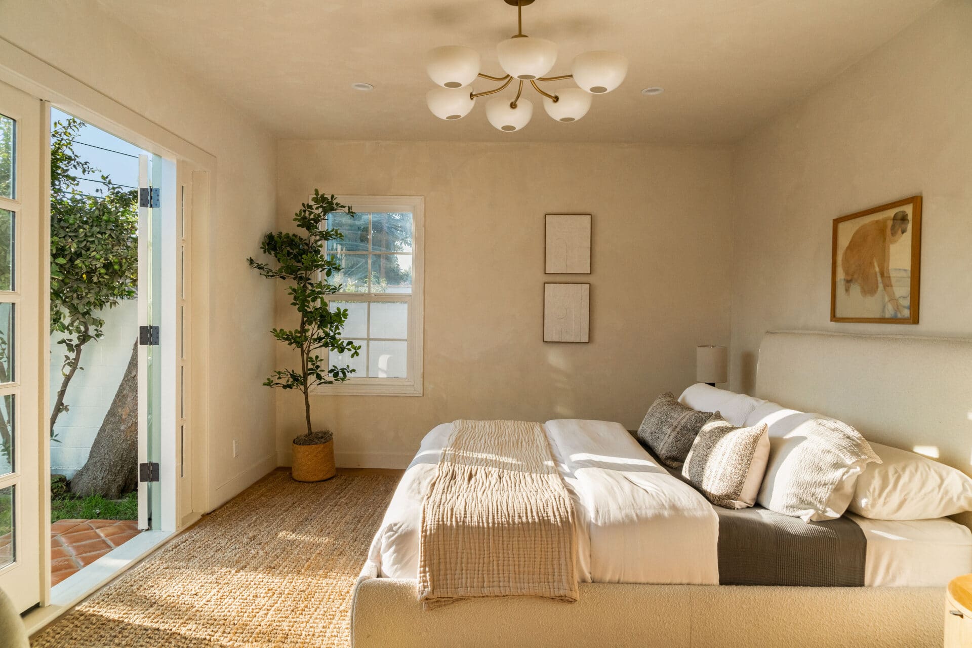 Each of the three generously sized bedrooms is a sanctuary of comfort and style. The primary features french doors to an outdoor patio, dual customized walk-in closets, and an en-suite bathroom with a soaking tub and separate shower. Imagine unwinding in your luxurious suite after a long day, surrounded by the soothing ambiance of the spa-like atmosphere. The additional bathrooms have been thoughtfully designed with eclectic yet cohesive finishes, featuring custom arched showers, authentic Zellige tile, and brushed brass finishes. Step outside to a sprawling outdoor space carefully divided into multiple entertaining and lounge areas, encircled by fruit trees and mature ficus hedging. Wake up to the sounds of birds chirping in your private garden then enjoy a leisurely breakfast with pomegranates picked right from your garden and lemon water with fruit born from your blossoming tree. Satisfy your appetite with produce from your personal farmer’s market with mature fruit trees such as lemon, lime, orange, pomegranate, banana, pepper + more! Multiple planter beds provide more space for herbs + veggies to grow. The newly constructed barbecue area with a 6-burner grill and built-in storage is perfect for hosting al fresco gatherings. Enjoy summer evenings grilling with friends and family, surrounded by the beauty of your own private slice of Los Angeles. The permitted 180 square foot bonus room offers the perfect rec room for entertaining or detached home office. It’s not just the home that makes this property so special.