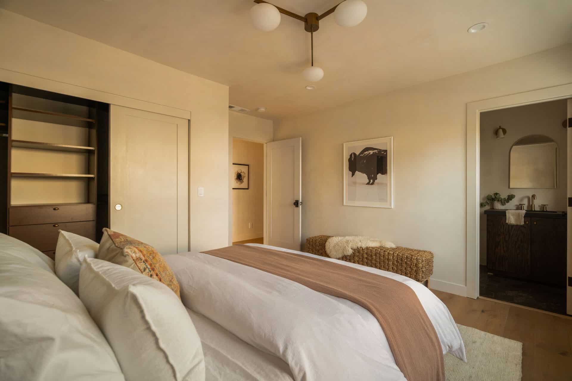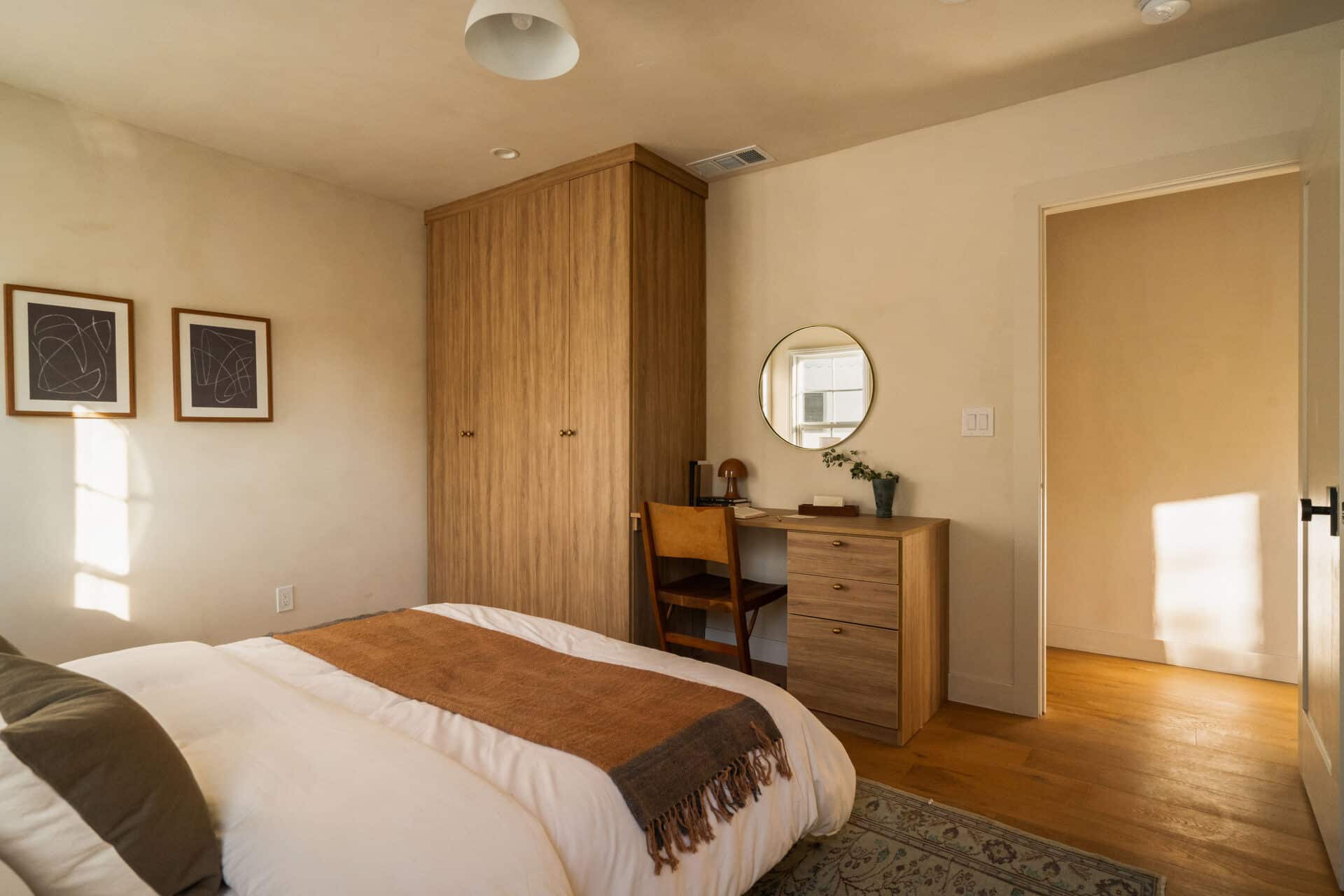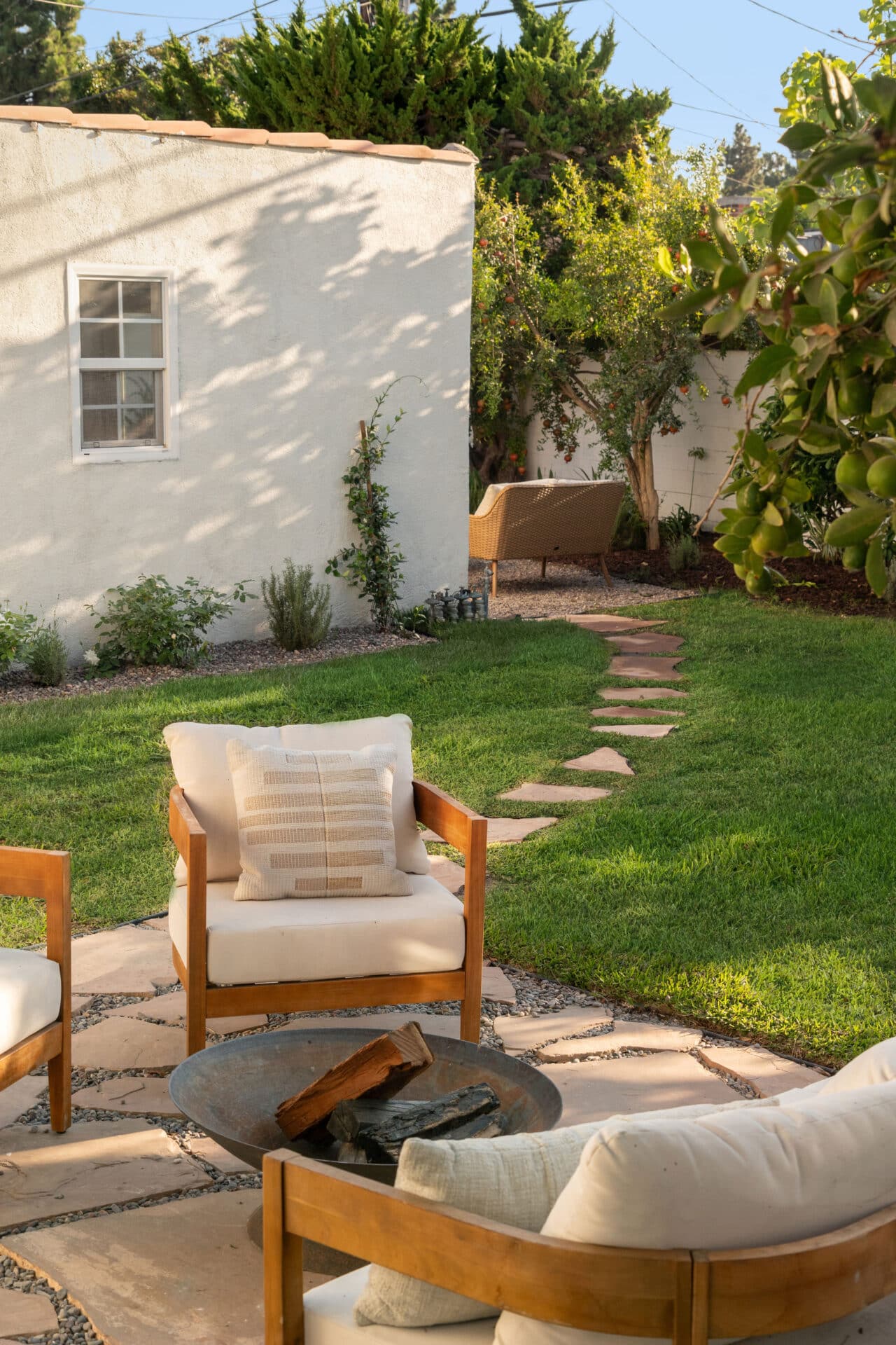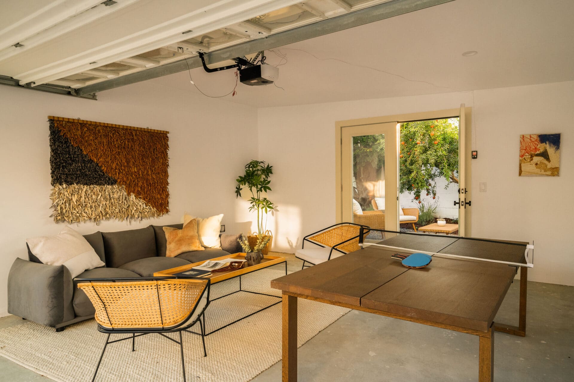 Each of the three generously sized bedrooms is a sanctuary of comfort and style. The primary features french doors to an outdoor patio, dual customized walk-in closets, and an en-suite bathroom with a soaking tub and separate shower. Imagine unwinding in your luxurious suite after a long day, surrounded by the soothing ambiance of the spa-like atmosphere. The additional bathrooms have been thoughtfully designed with eclectic yet cohesive finishes, featuring custom arched showers, authentic Zellige tile, and brushed brass finishes. Step outside to a sprawling outdoor space carefully divided into multiple entertaining and lounge areas, encircled by fruit trees and mature ficus hedging. Wake up to the sounds of birds chirping in your private garden then enjoy a leisurely breakfast with pomegranates picked right from your garden and lemon water with fruit born from your blossoming tree. Satisfy your appetite with produce from your personal farmer’s market with mature fruit trees such as lemon, lime, orange, pomegranate, banana, pepper + more! Multiple planter beds provide more space for herbs + veggies to grow. The newly constructed barbecue area with a 6-burner grill and built-in storage is perfect for hosting al fresco gatherings. Enjoy summer evenings grilling with friends and family, surrounded by the beauty of your own private slice of Los Angeles. The permitted 180 square foot bonus room offers the perfect rec room for entertaining or detached home office. It’s not just the home that makes this property so special.