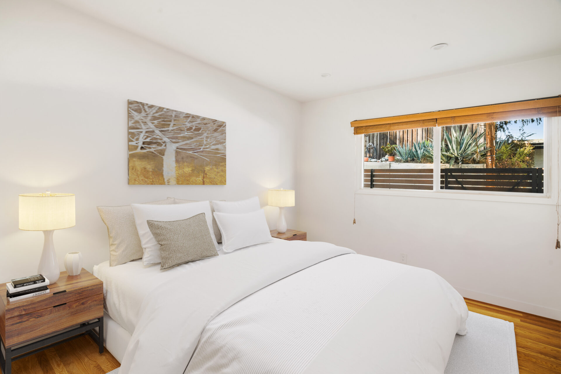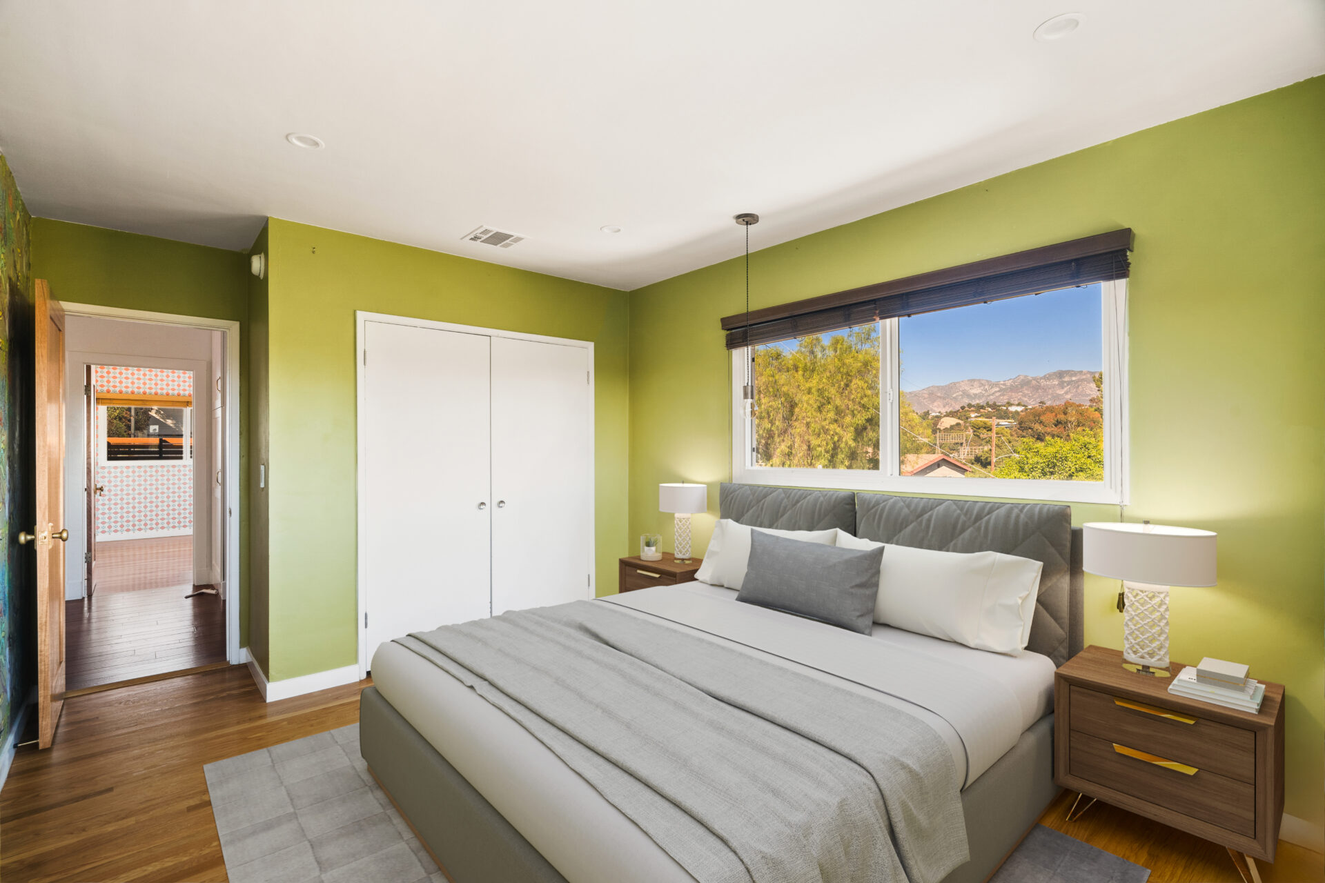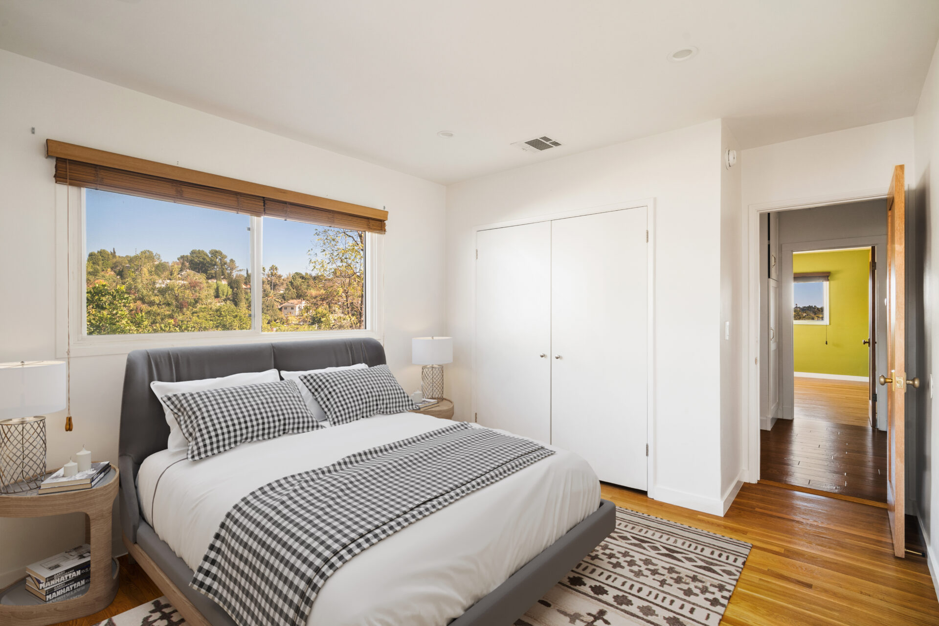 Top floor mid-century stunner on coveted Eucalyptus Ln! Flanked by trees and pristine views out every window, one feels like they’re living in Big Bear right in the thick of Highland Park & Eagle Rock. Wonderfully spacious, with 4 bedrooms, 2 full baths and multiple private deck & patio areas. The sunlit living room has expansive windows and connects to the completely updated kitchen with SS KitchenAid appliances. The primary suite includes a full en-suite bath, and 3 additional bedrooms and full guest bath offer flexibility for guest rooms or an office space.