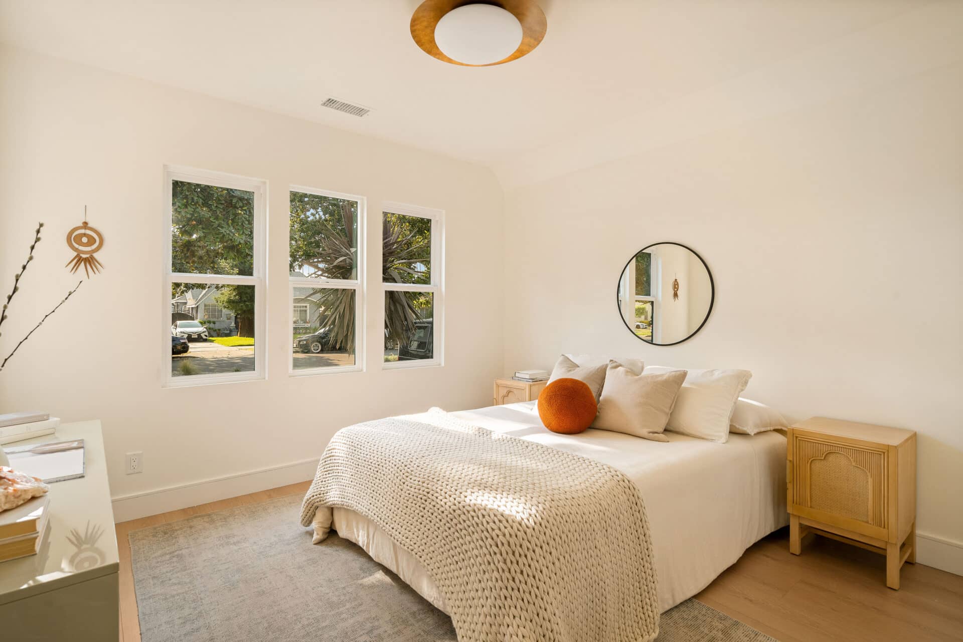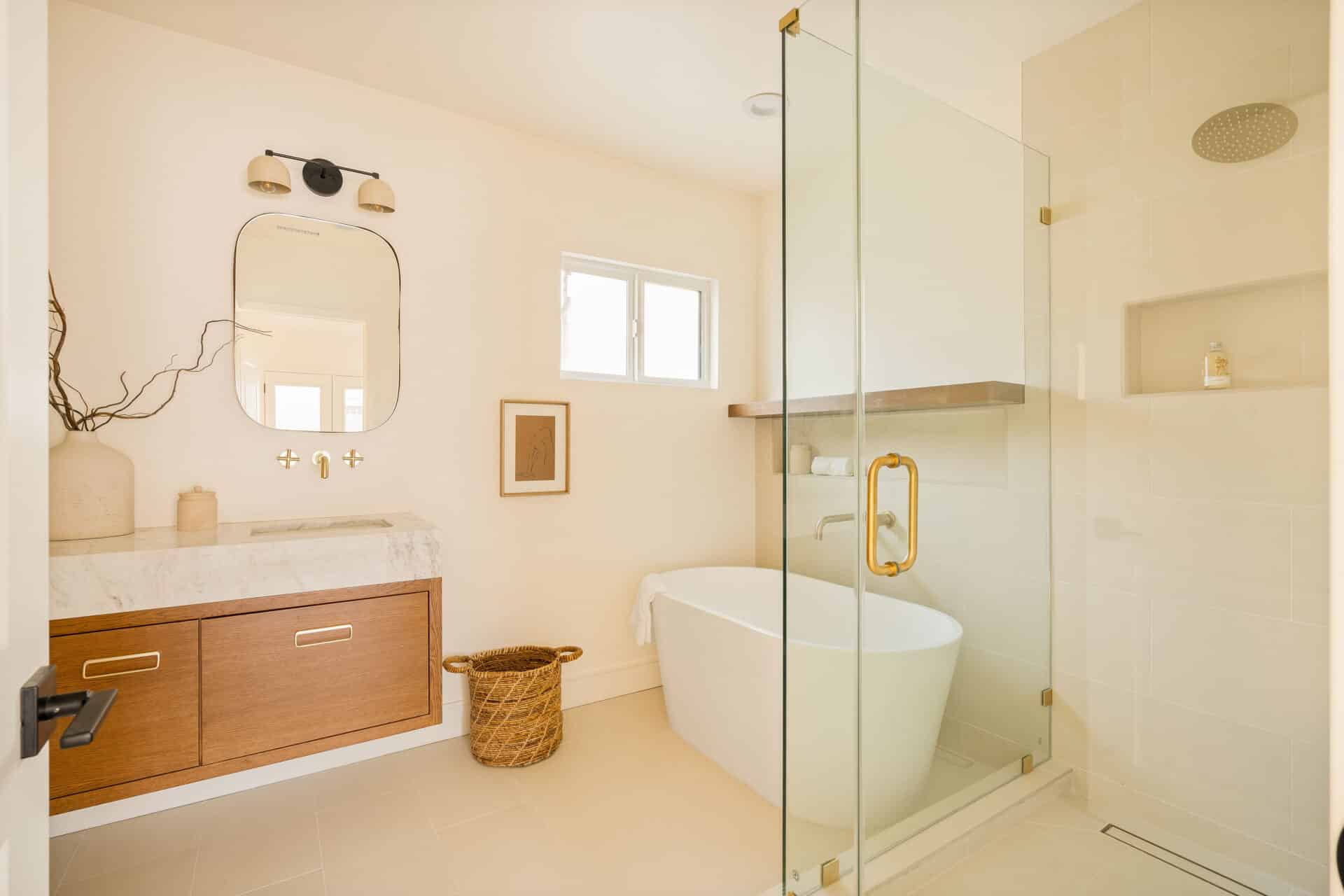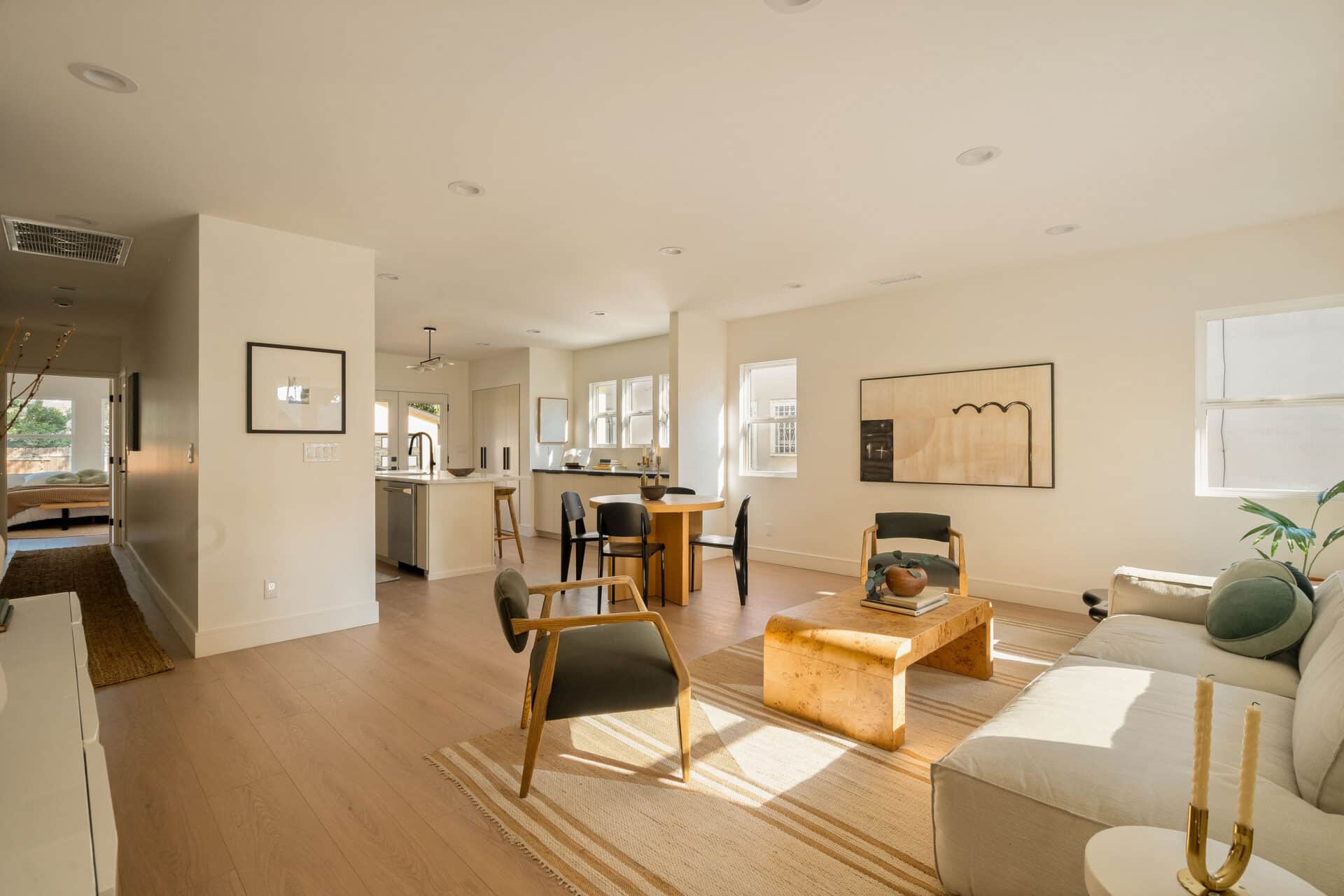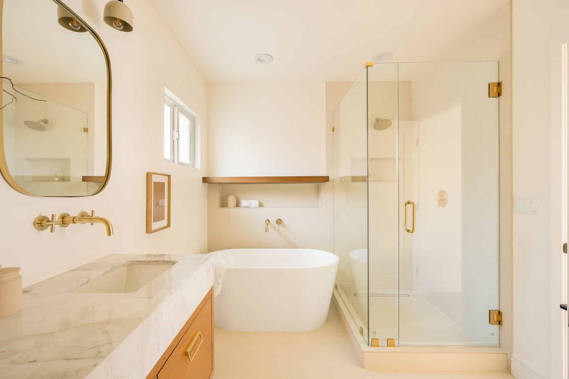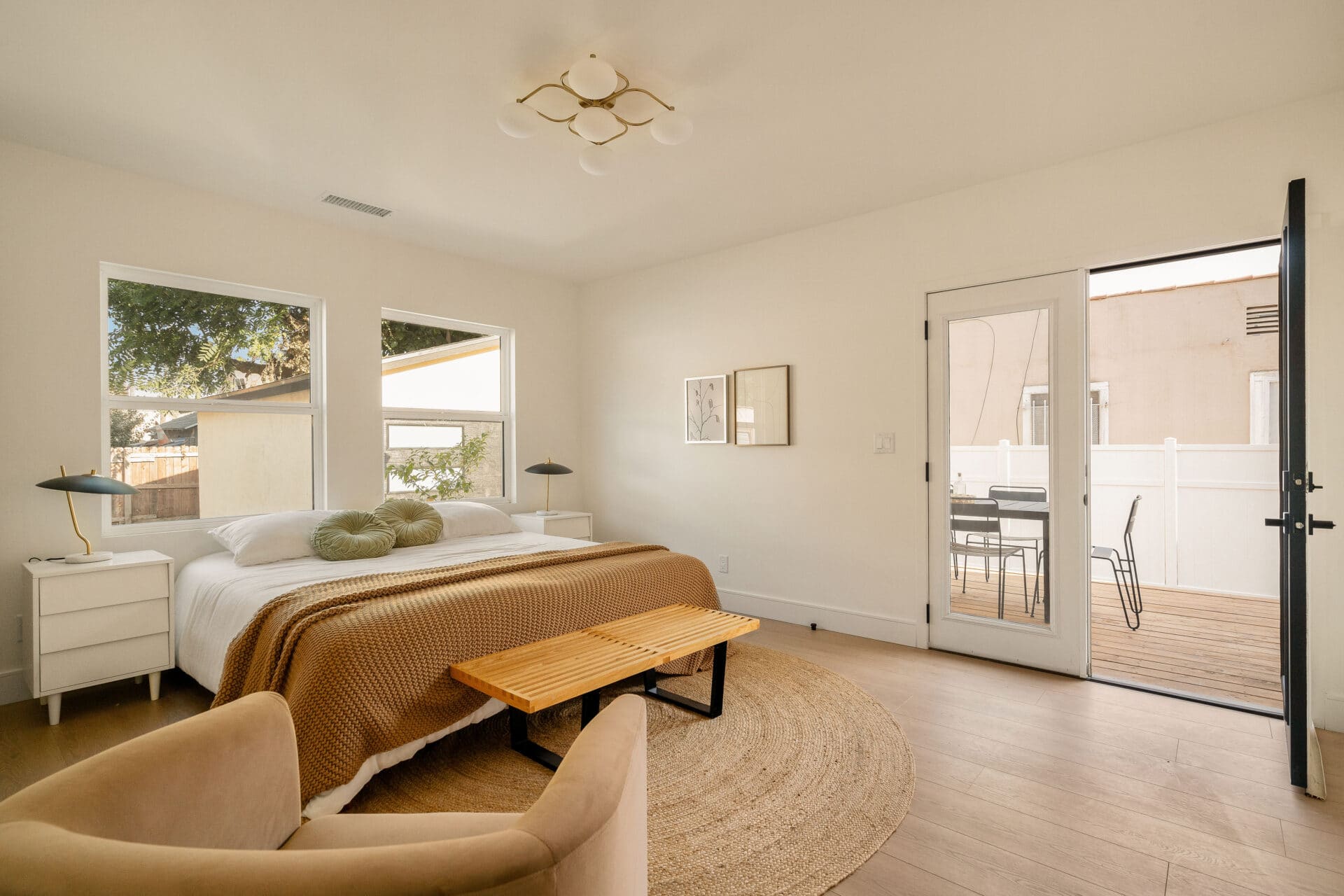 The master suite offers a view of the backyard, plus a walk-in closet and en suite bath with a freestanding tub, custom white oak vanity, and designer light fixtures. Two ample-sized sunlit bedrooms share a stunning hallway bath showcasing marble accents, a tub-shower combo, designer tiles and a custom vanity. With new systems in place, including a new roof, updated electrical wiring with a 200-amp panel, new plumbing, and a new AC system, this home is ready for you to move in and enjoy. It’s more than just a place to live – it’s a cozy and versatile retreat that captures the essence of the California lifestyle. RTI plans for an ADU conversion will be provided.