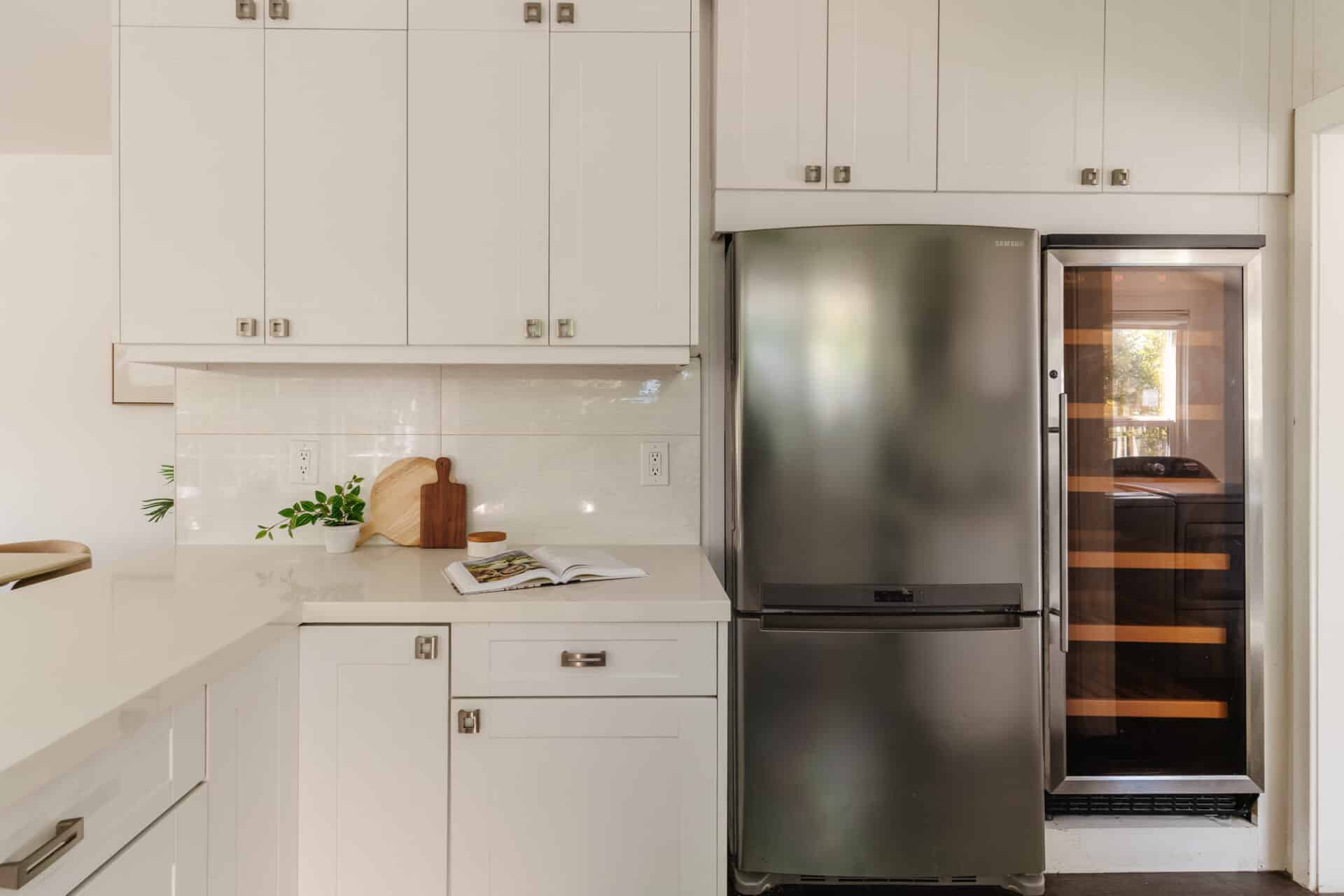 The updated kitchen, outfitted with quartz counters and stainless steel appliances, invites slow mornings and spontaneous dinners