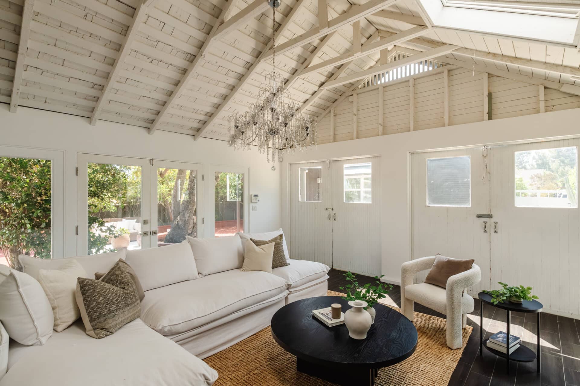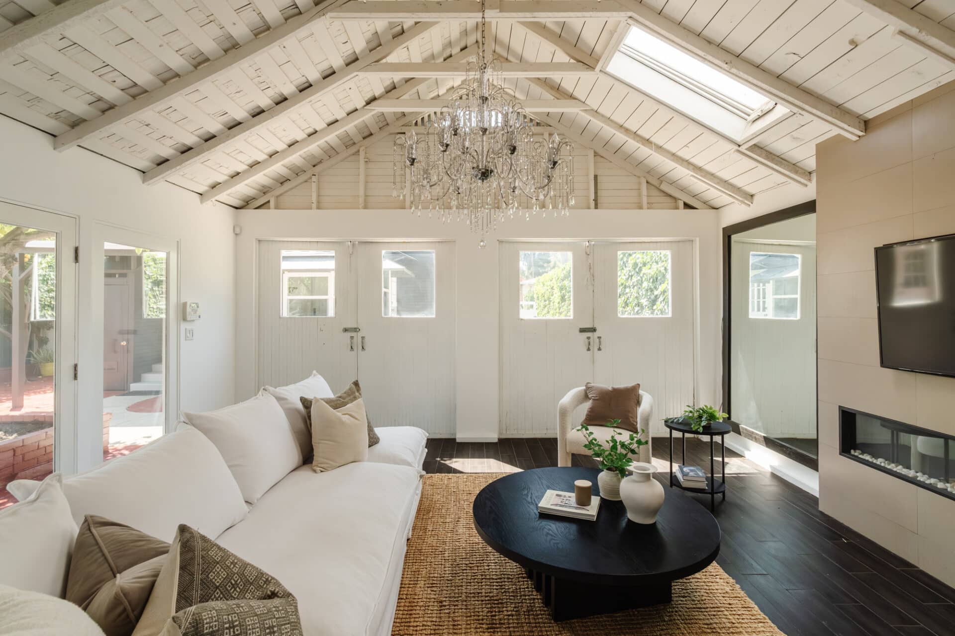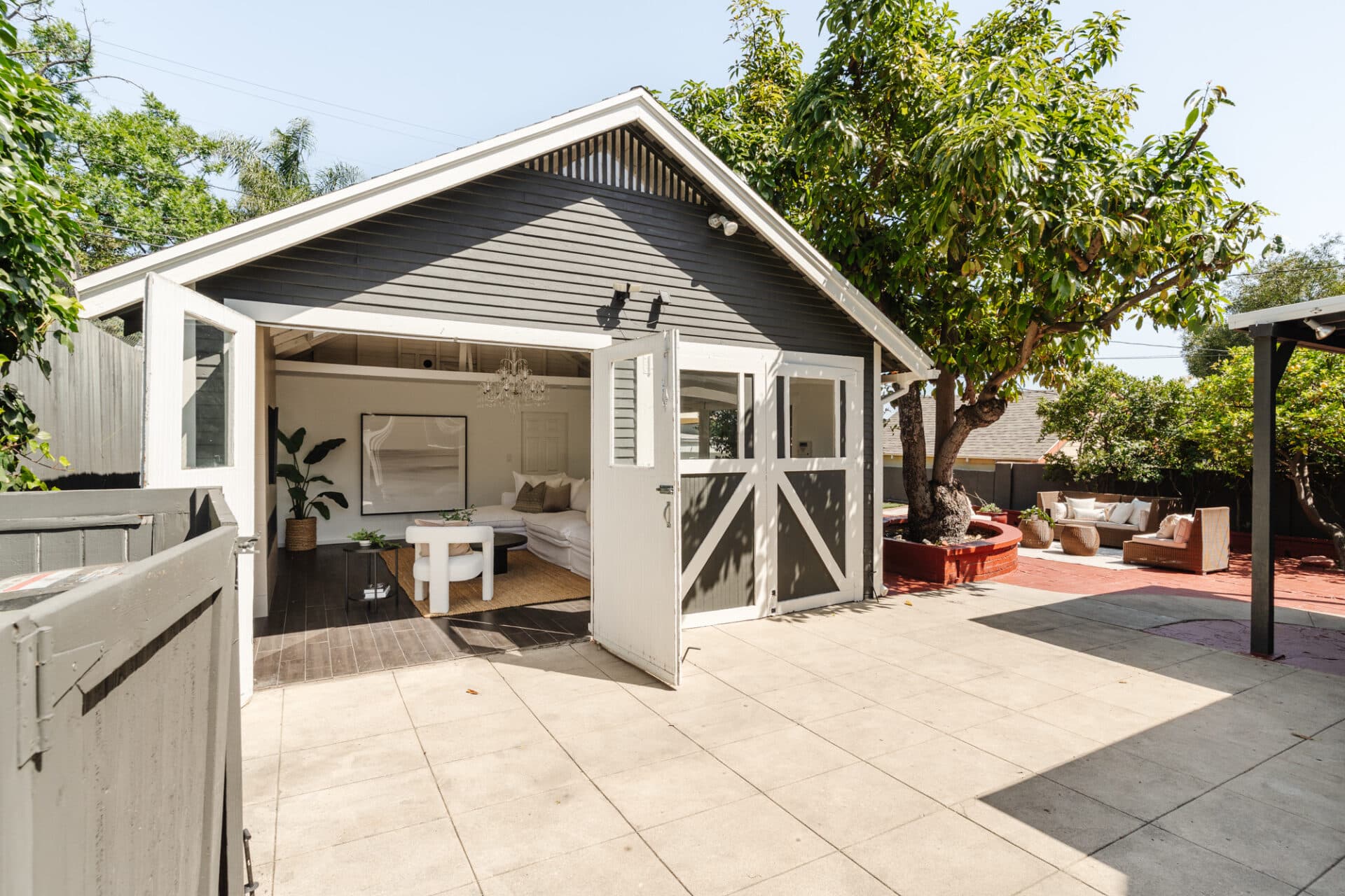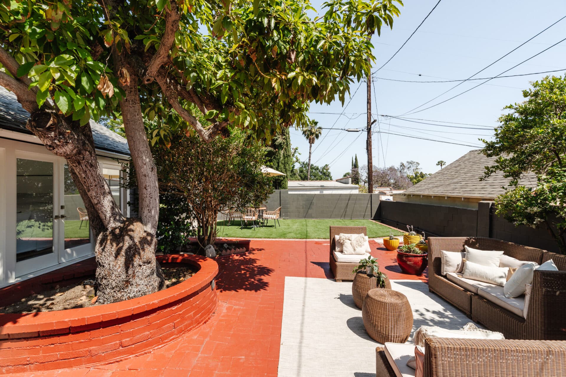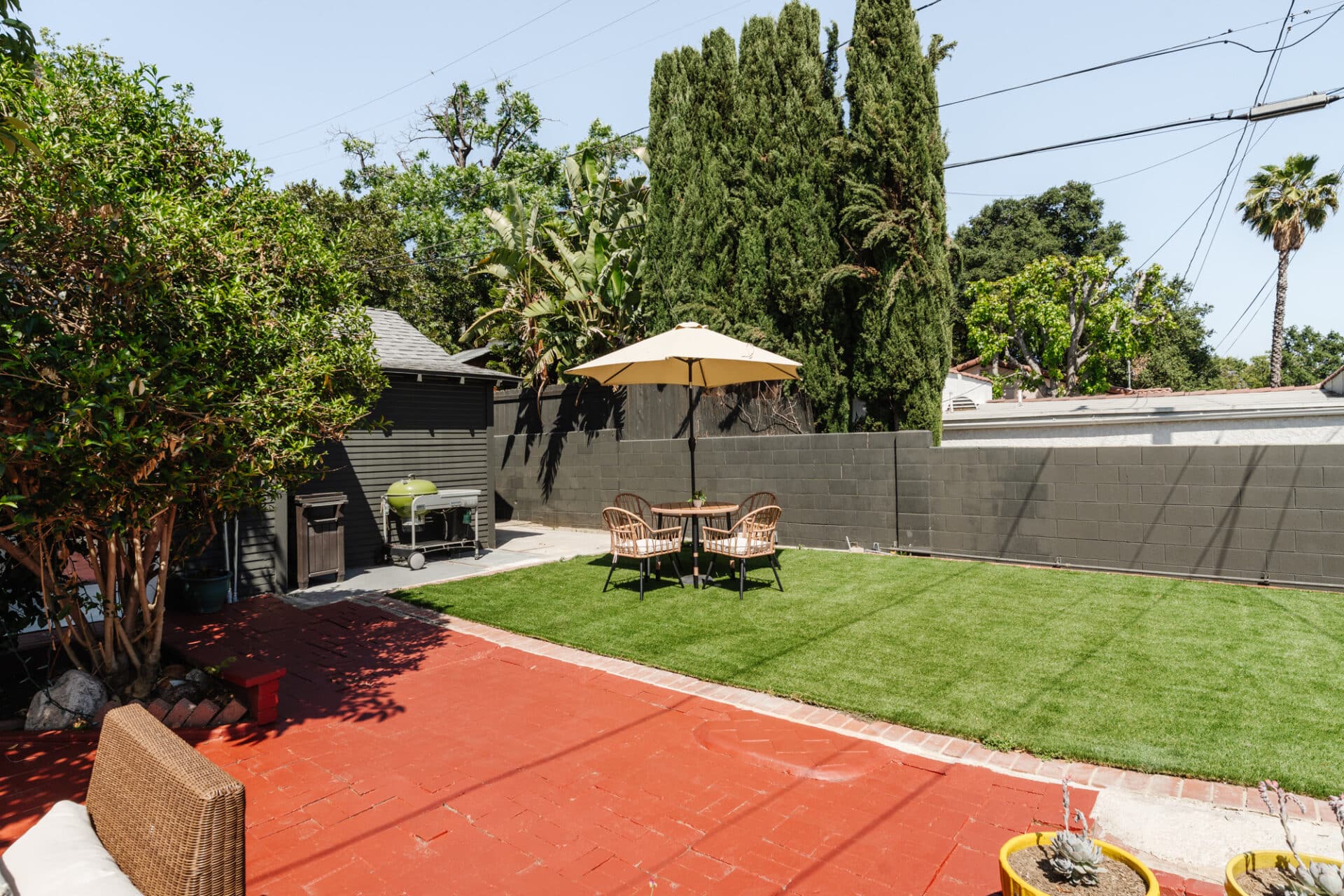 Out back, the detached garage feels like its own cottage getaway, with high vaulted ceilings, tile floors, an electric fireplace, and french doors opening to the expansive backyard. Garage additionally boasts a valuable separate storage room. The backyard offers beauty and potential: a lush landscape with peekaboo views, freshly painted terrace for al fresco evenings, and ample room to add a pool or an ADU. This is a home with heart, moments from neighborhood gems like Unincorporated Coffee Roasters, Little Beast, Milkfarm, Four Cafe, and just a few blocks from Target and the 134 freeway. In Eagle Rock, it’s rare to find a home this charming—with room to grow. Welcome home!