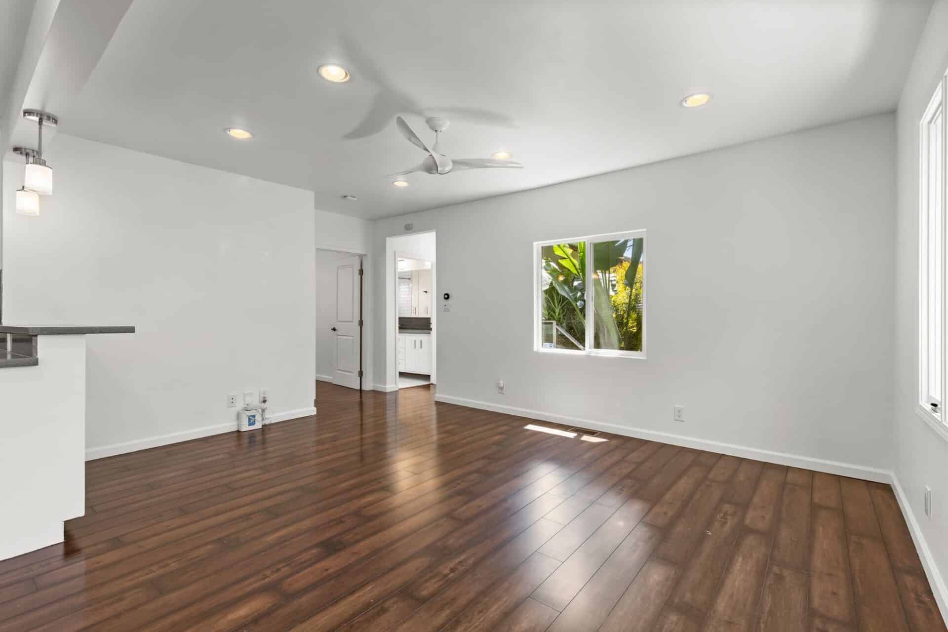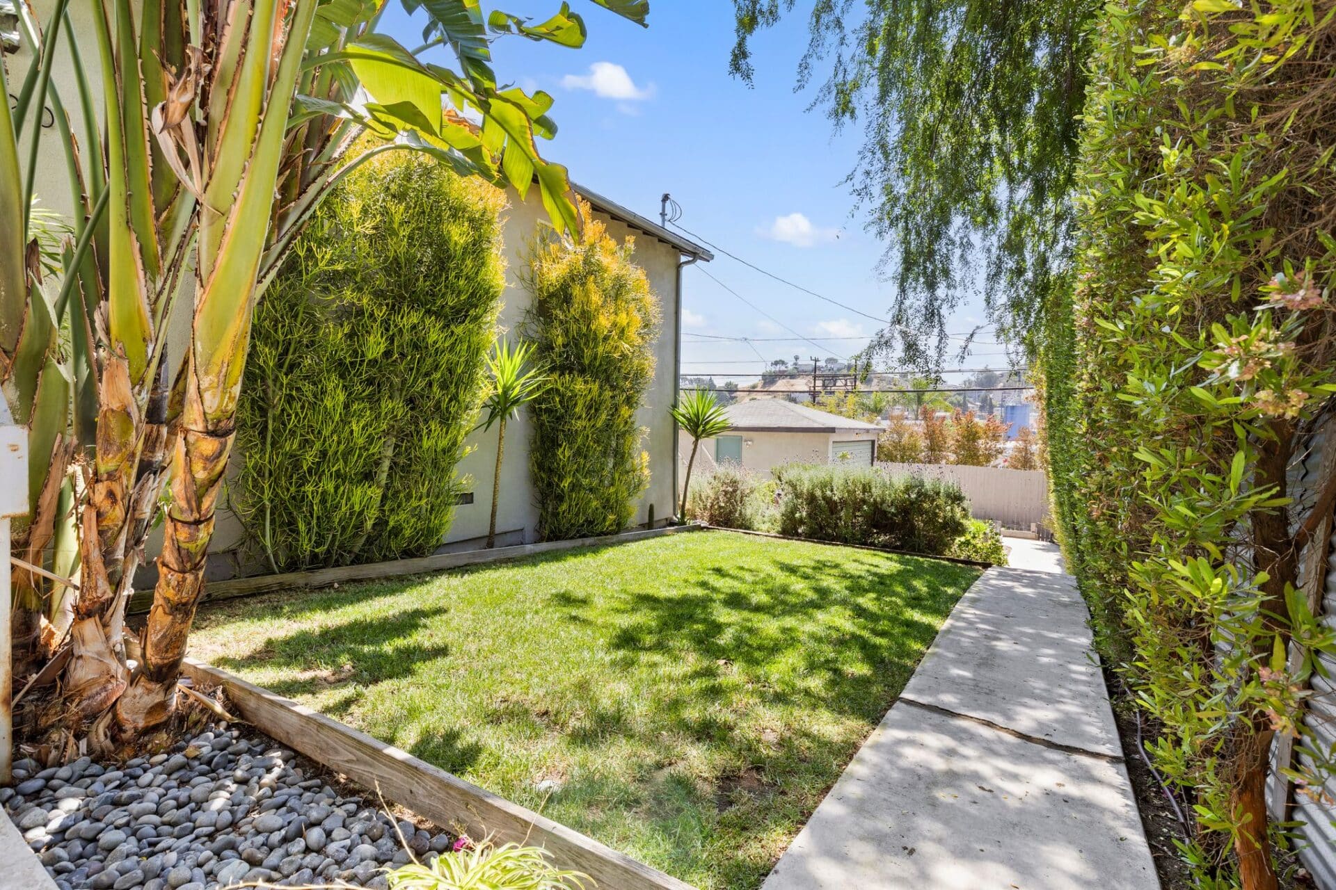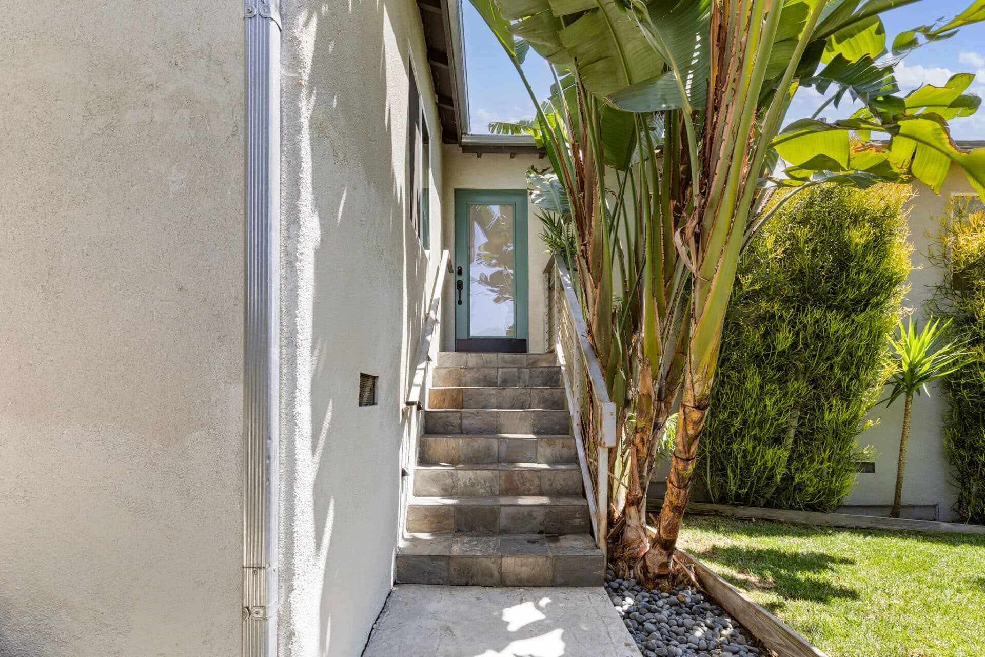 Soothing 3 bed + 2 bath modern hideaway in El Sereno! Past the lush, mature landscaping and through the steel security gate lies a private tropical oasis where towering bird of paradise plants welcome you to this beautifully maintained home. The open concept living room is drenched in sunlight while maintaining privacy, opening to a freshly painted galley kitchen with refrigerator, gas stove and Bosch dishwasher. French doors lead you to a large covered patio with a gas fireplace, built-in grill, and oversized concrete countertop designed for relaxed evenings or lively gatherings under the stars. Down the hall finds the stackable washer/dryer tucked away in its own closet. The primary suite offers a serene retreat with a private en-suite bathroom, while two additional bedrooms provide flexible space for guests, work, or creative pursuits.