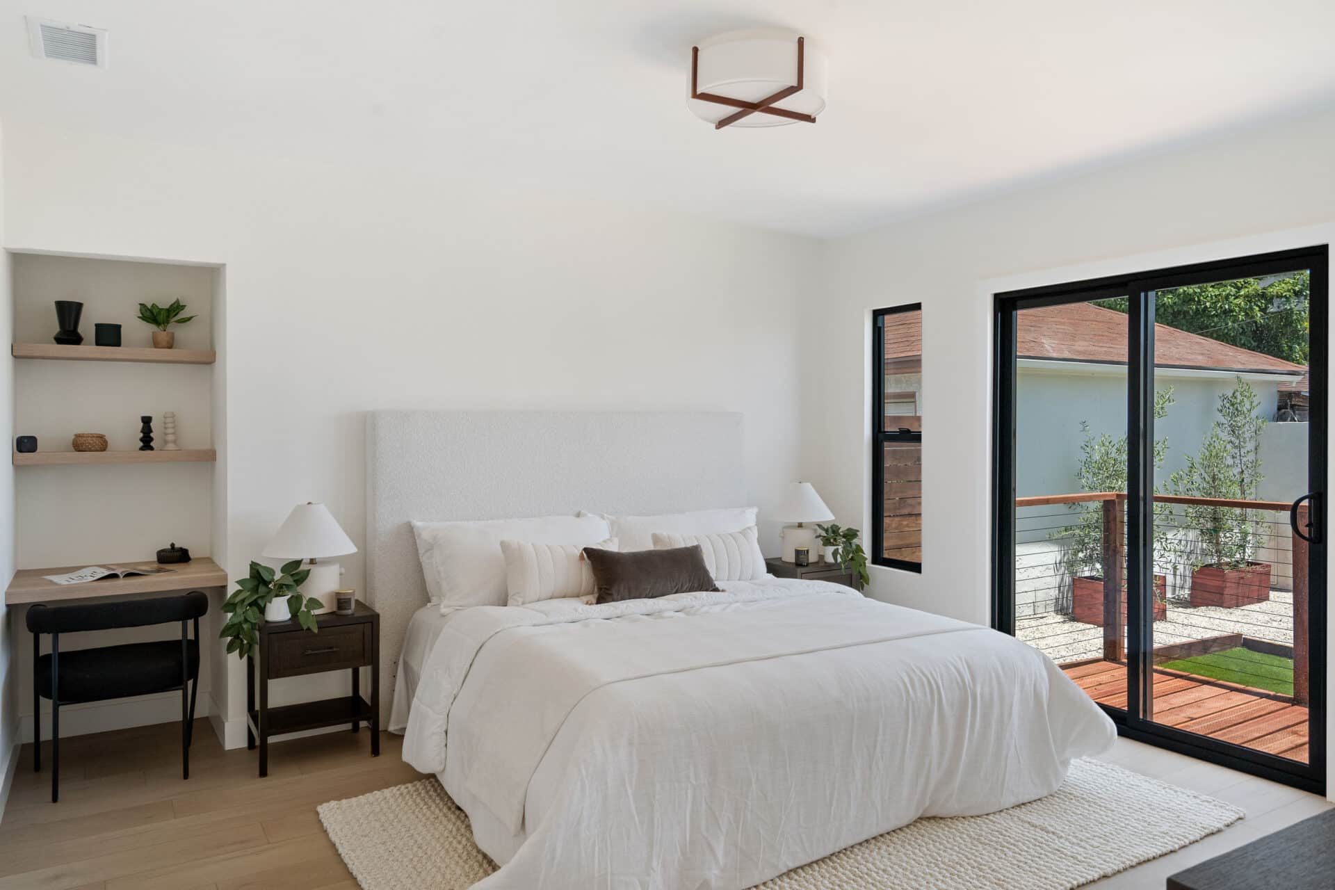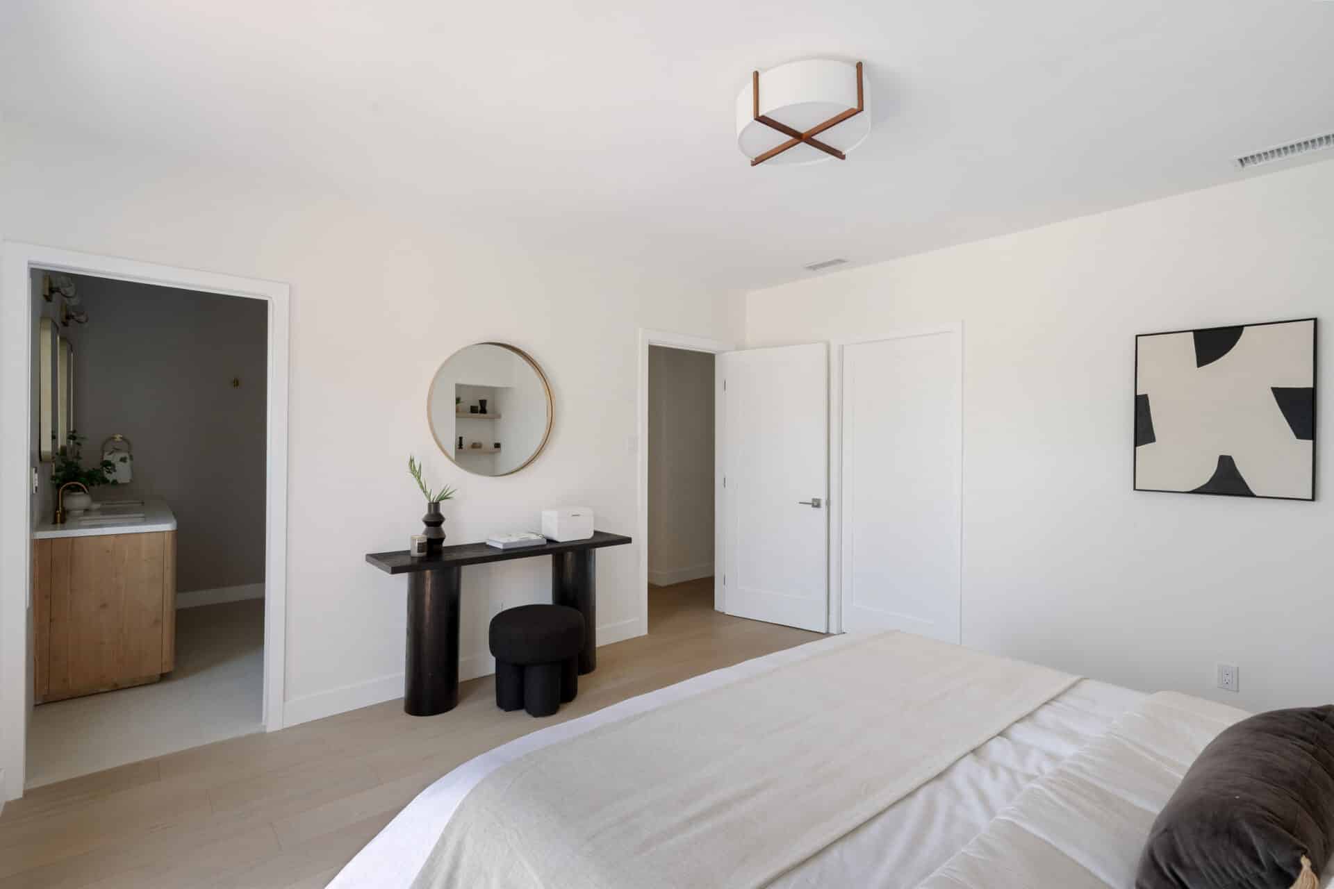 Retreat to the master bedroom, a true sanctuary featuring a large walk-in closet and a serene ensuite bathroom. Here, a dual vanity offers ample space for getting ready, while the master bathtub/shower combination invites you to unwind. Beyond the interior, the exterior has been thoughtfully redesigned for seamless indoor-outdoor living. The backyard is a private oasis, boasting a pavered patio with olive trees and an herb garden to cultivate your own harvest. Enjoy the quiet moments in solitude behind privacy hedging and new wood fencing. Even the finished garage has been elevated with epoxy floors, making it an ideal flex space for a home office, gym, or studio. And for those with an eye to the future, an expansive walk-in attic offers abundant storage or potentially offering the possibility of future conversion into additional living space. Nestled in the highly desirable Windsor Hills neighborhood, you’re just minutes from local favorites like Hilltop Coffee, Somerville Restaurant + Lounge, and Jon & Vinny’s Italian, with easy access to Culver City, West Adams, LAX and more. This isn’t just a house; it’s a lifestyle, meticulously crafted for the discerning buyer. Are you ready to make it yours?