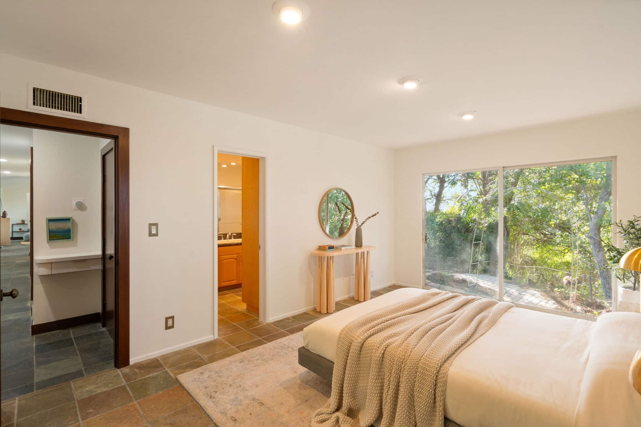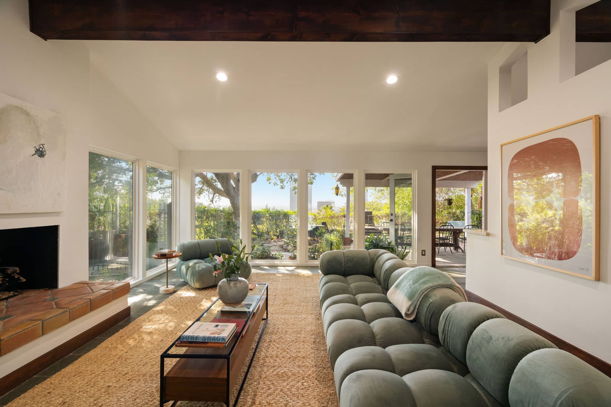 A hidden 1960s Mid-Century retreat with sweeping views, tucked into the trees above the city—welcome to your hillside oasis.