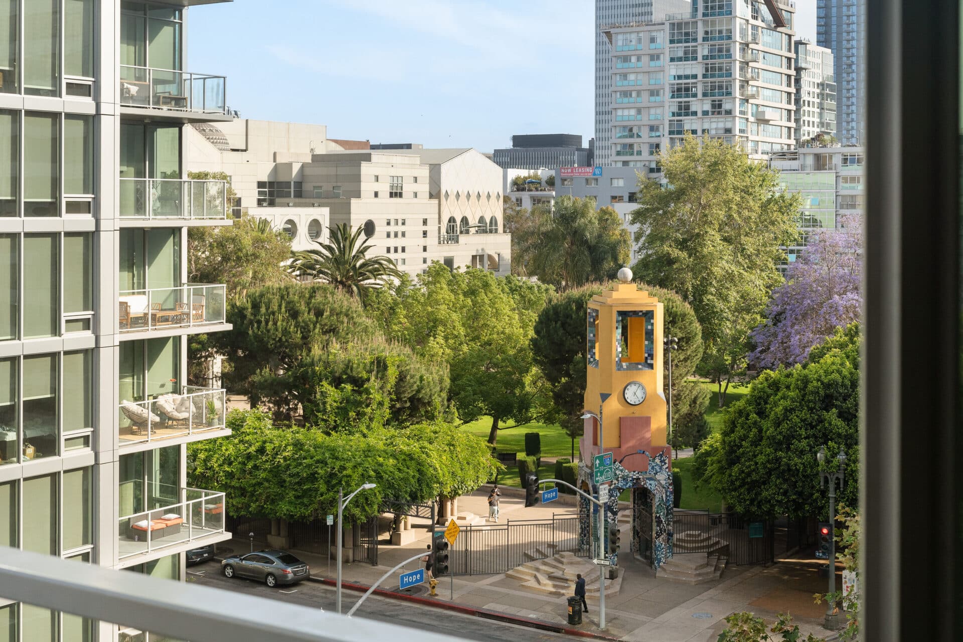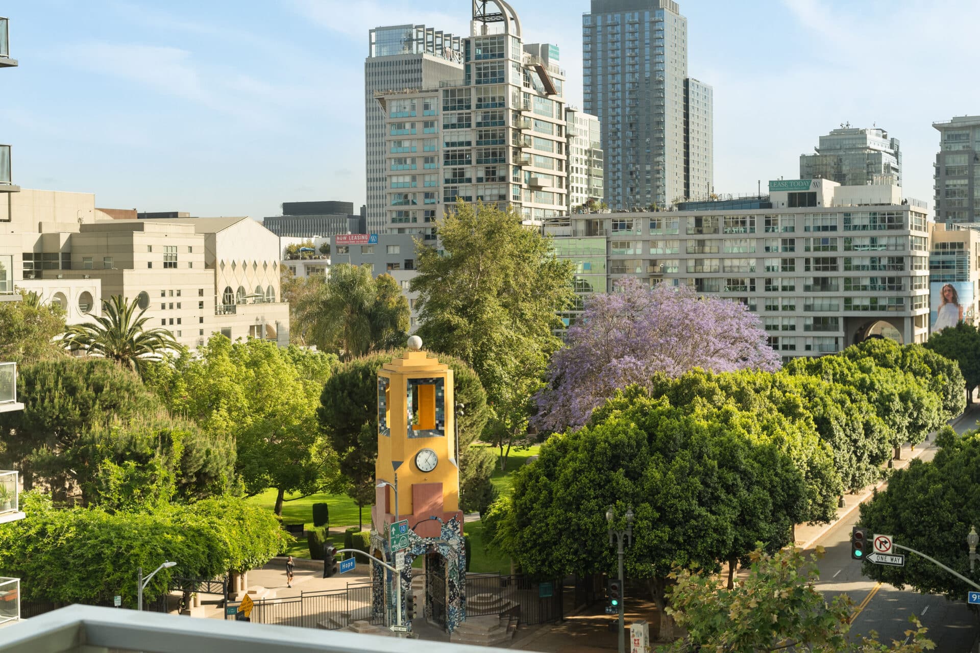 Discover the quintessential Downtown LA lifestyle in this stunning industrial-cool studio loft, perfectly situated on the 5th floor of the highly sought-after Market Lofts. With an incredible vantage point overlooking the building’s entrance, verdant park views, and glistening city lights this unit offers a serene escape amidst the vibrant city.