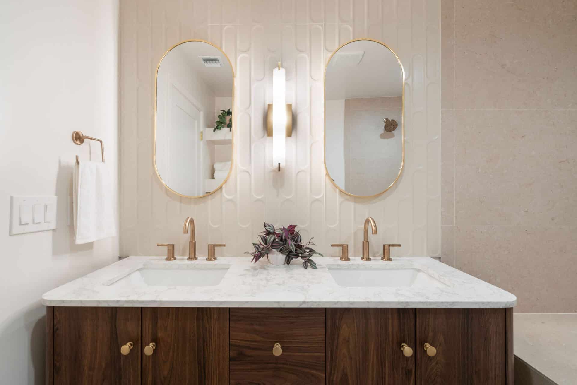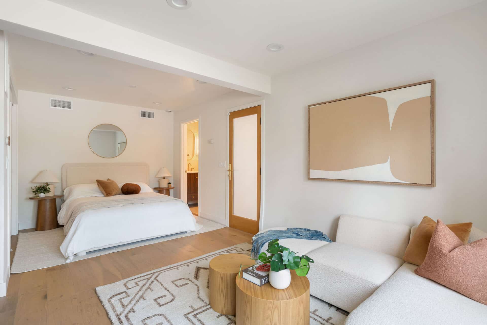 Each bedroom is generously sized with spacious closets and 2 beautifully appointed bathrooms offering stylish tile work and brushed brass modern fixtures.