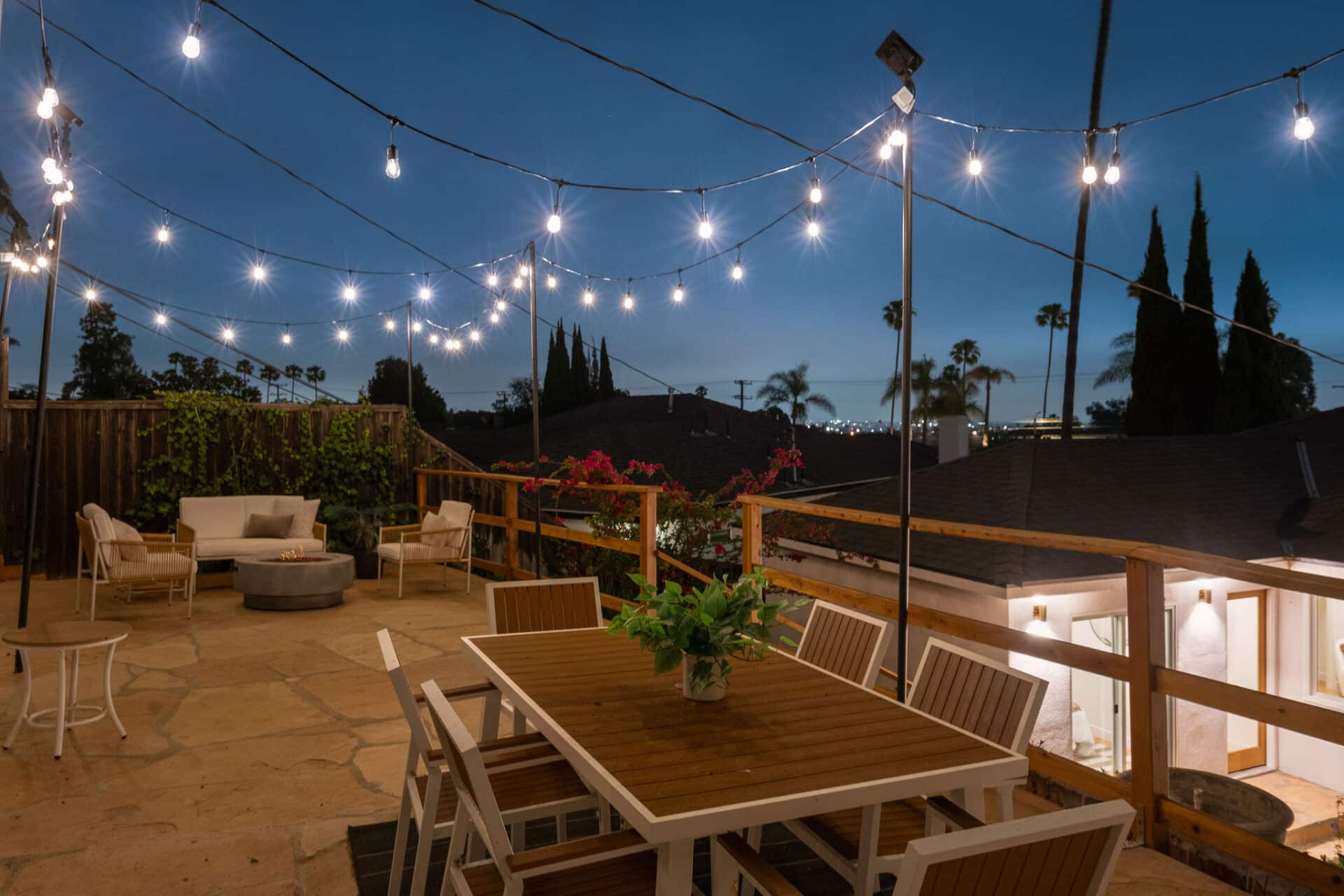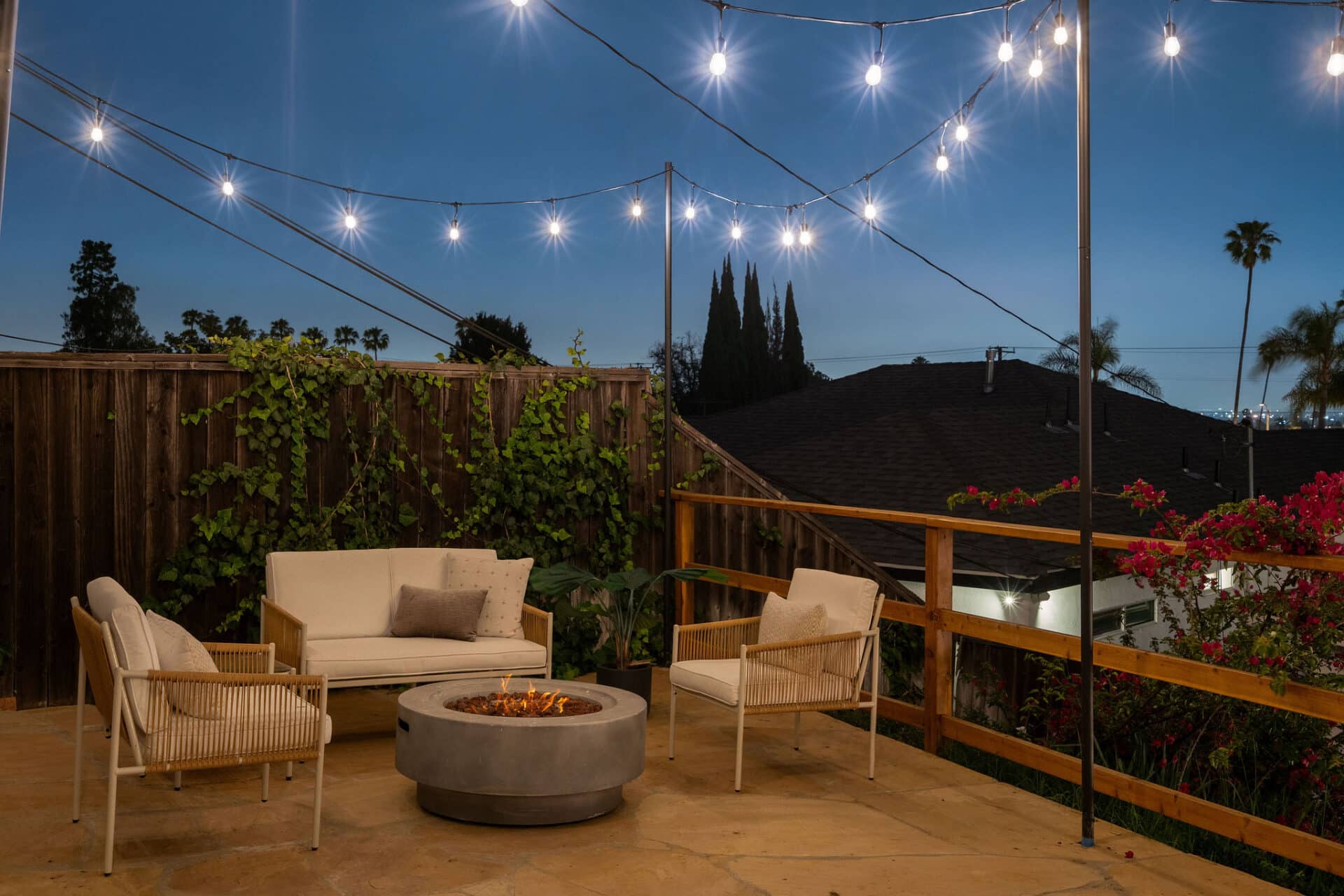 Step outside to the tiered backyard, designed for effortless entertaining with multiple lounging areas, lush landscaping, and plenty of space for dining al fresco or hosting gatherings under the stars.