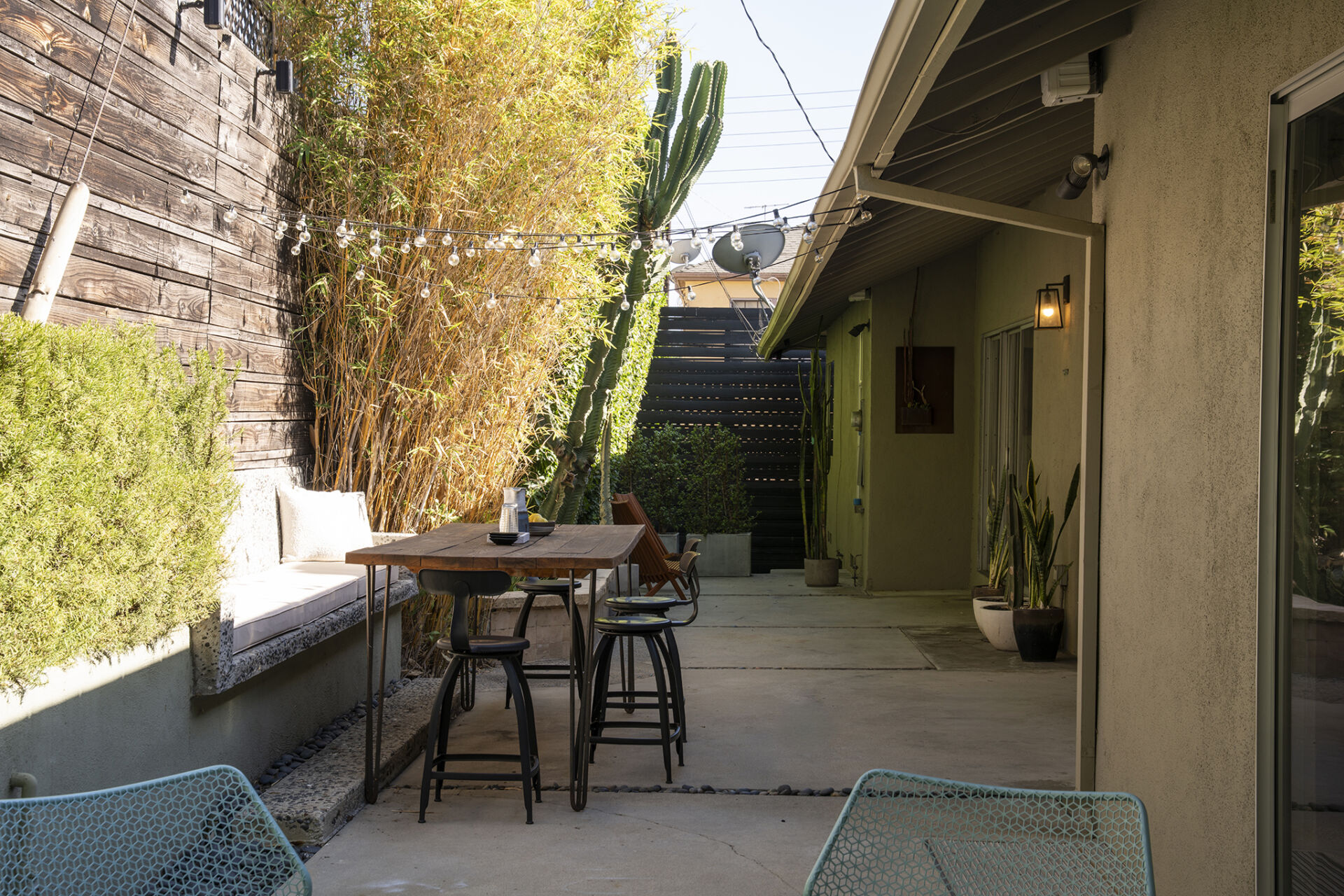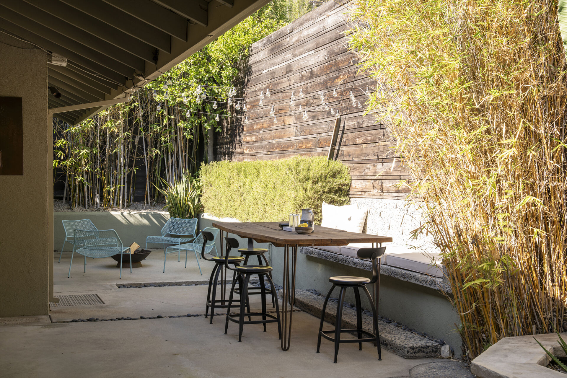 Step into the backyard through any of the three large sliding doors and you’re in an entertainer’s dream—multiple zones for lounging and dining, including a built-in bench and custom table perfect for unforgettable dinner parties. A private stretch of lawn completes the backyard, ideal for outdoor play or simply soaking up the sun.