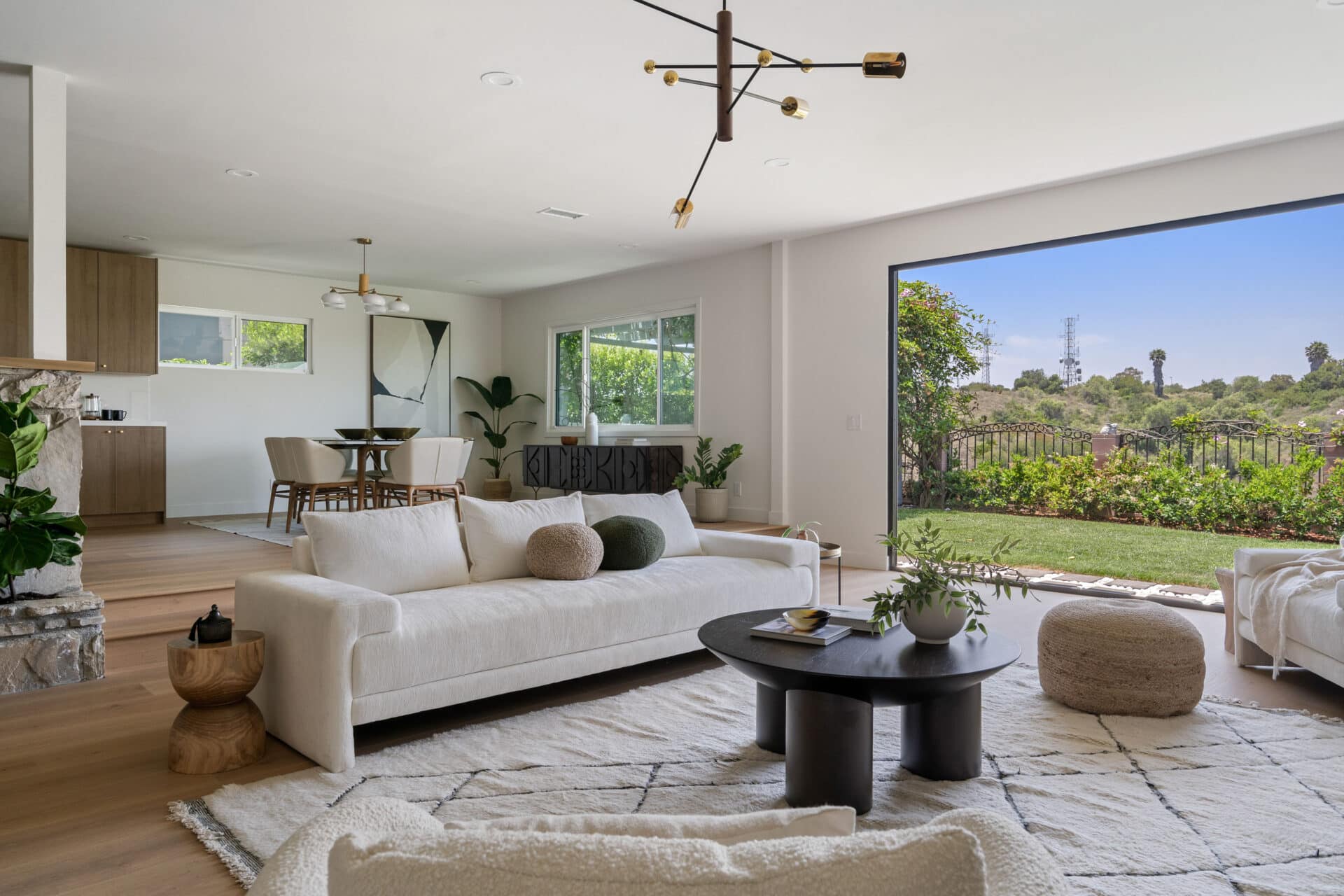 Perched above the city with sweeping views of Kenneth Hahn Park, this fully reimagined Mid-Century Modern gem blends iconic architectural details with high-end curated finishes.