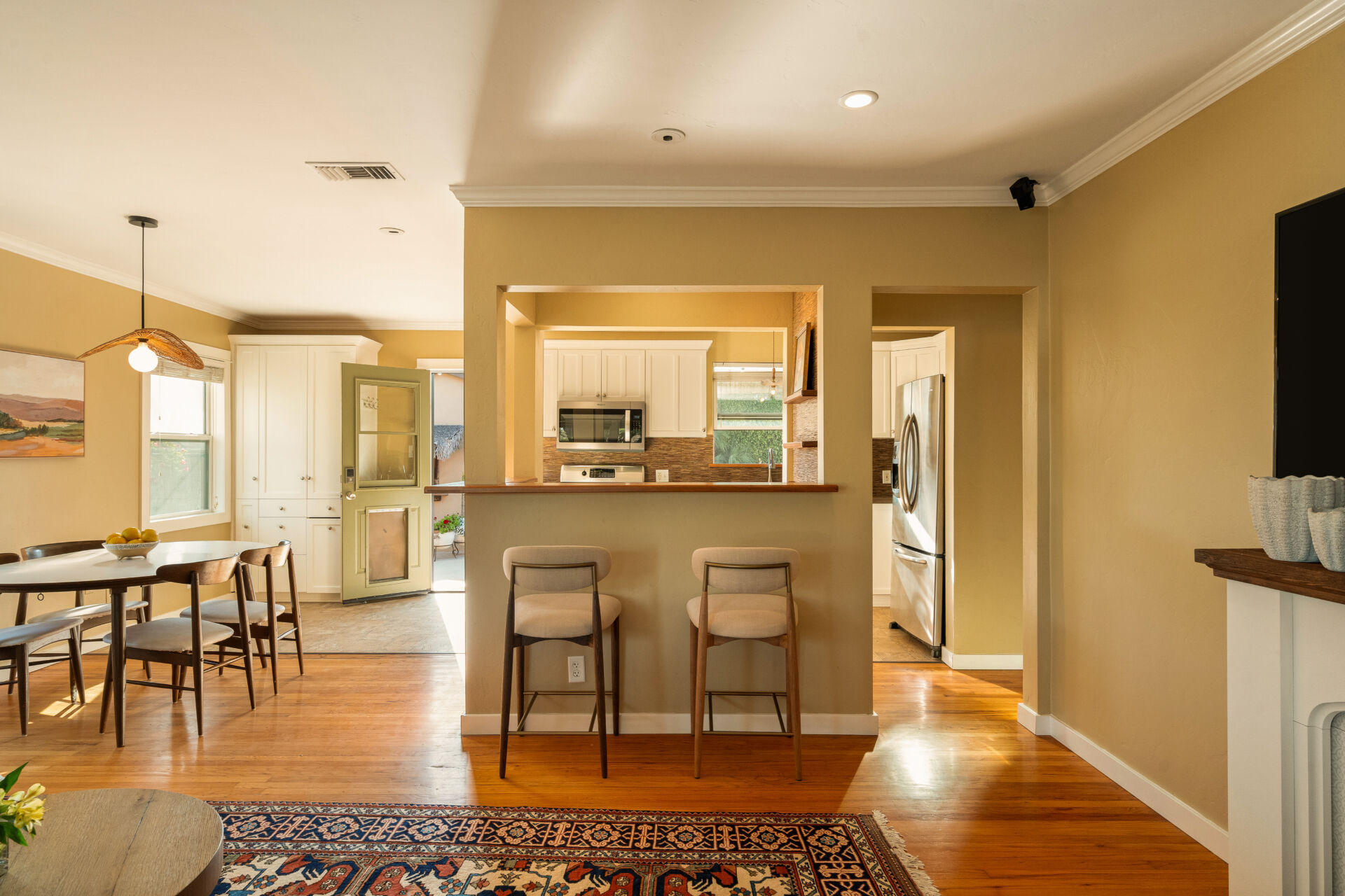 This 1950s ranch, nestled in the shade of mature trees, sits on one of Ventura’s most desirable midtown streets. Don’t let the “2-bedroom” label fool you, there’s also an additional spacious third room, plus a flex space in the garage.