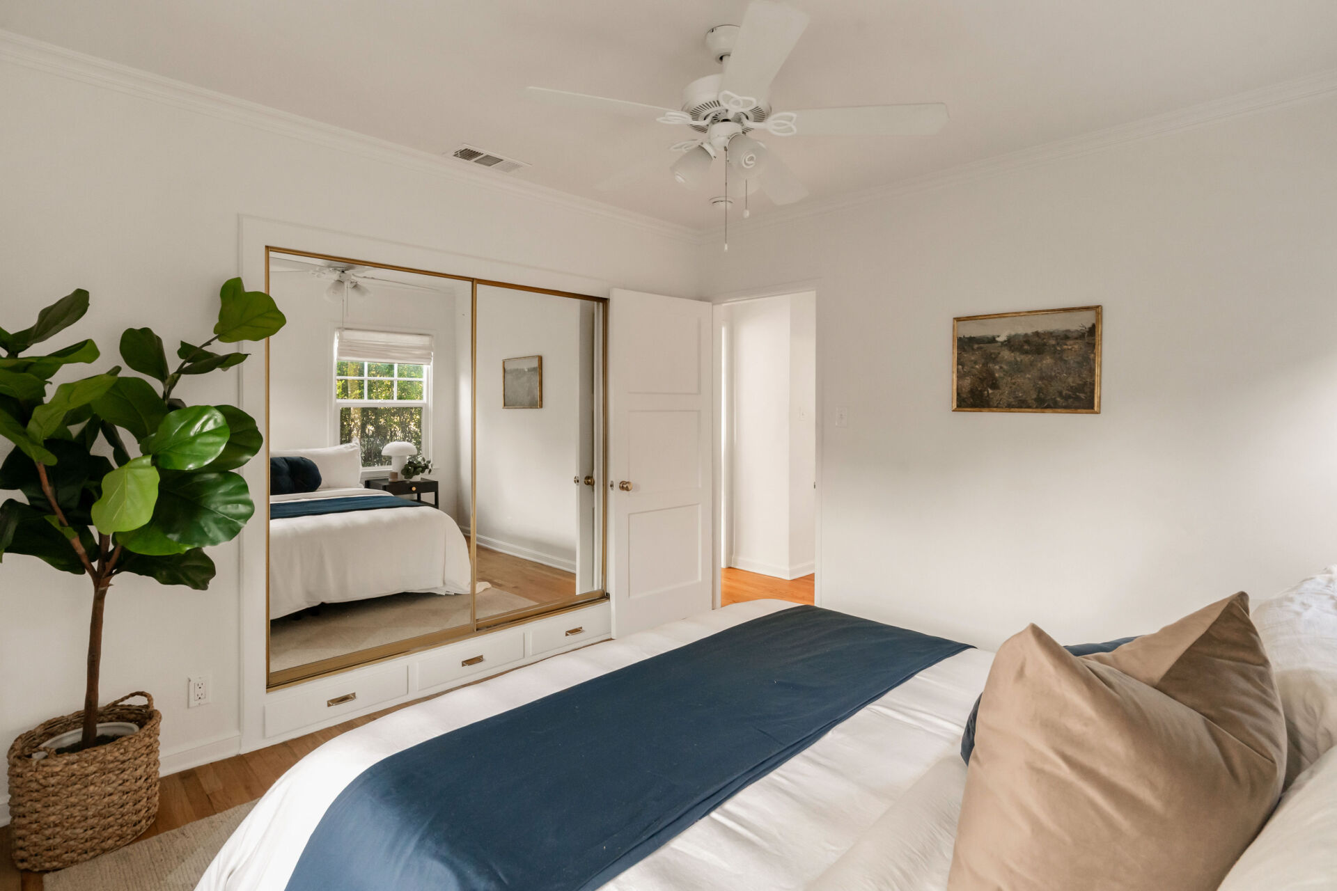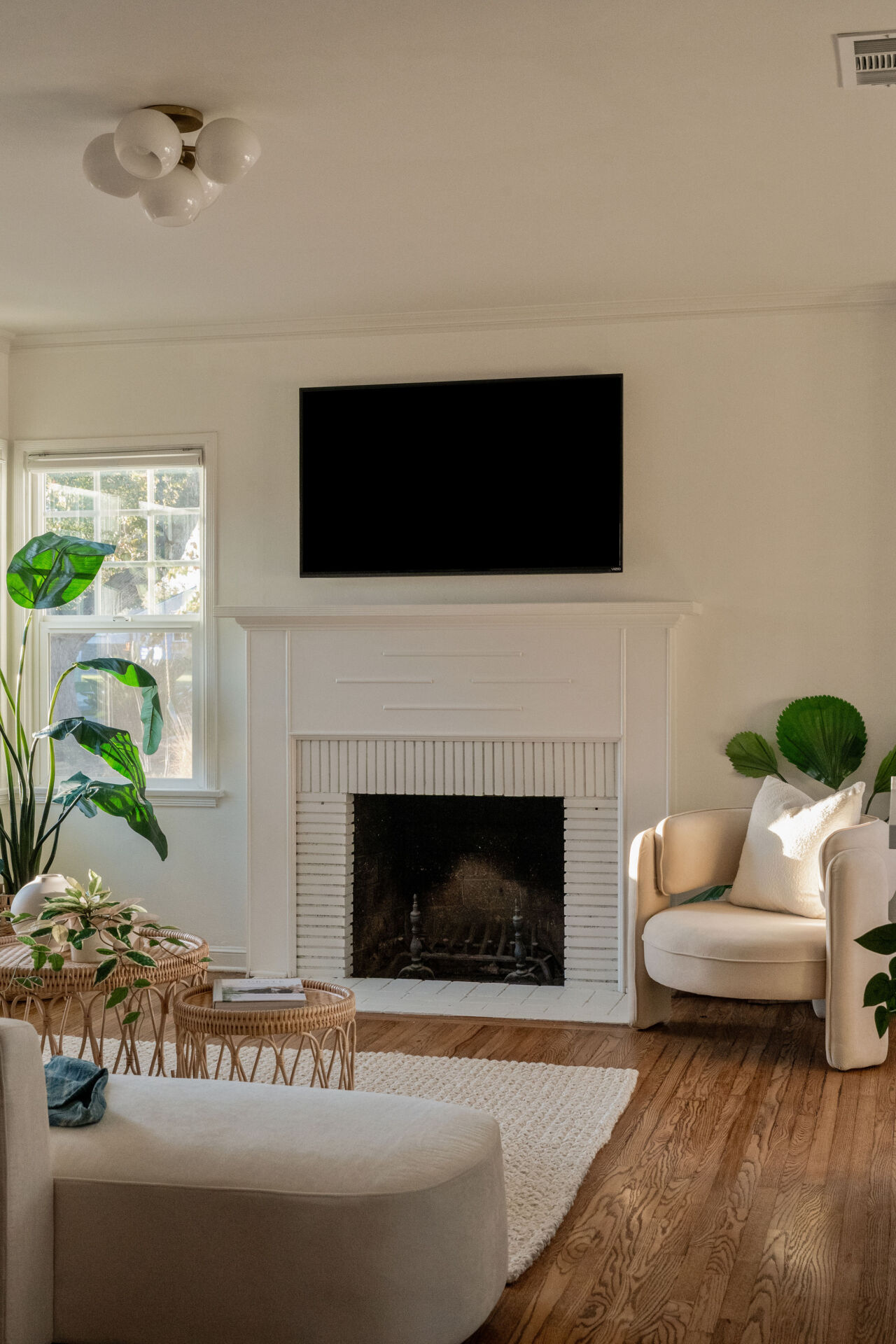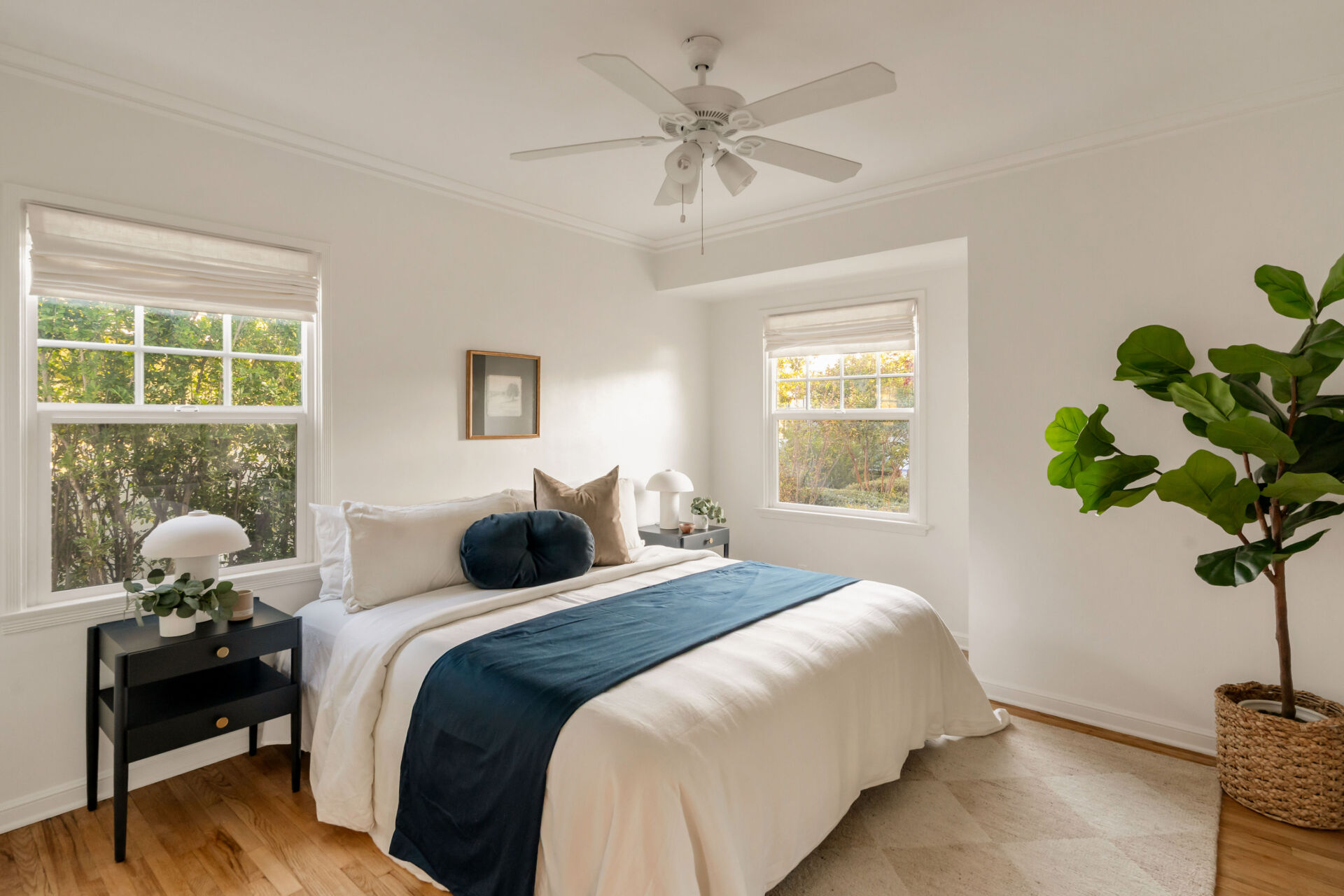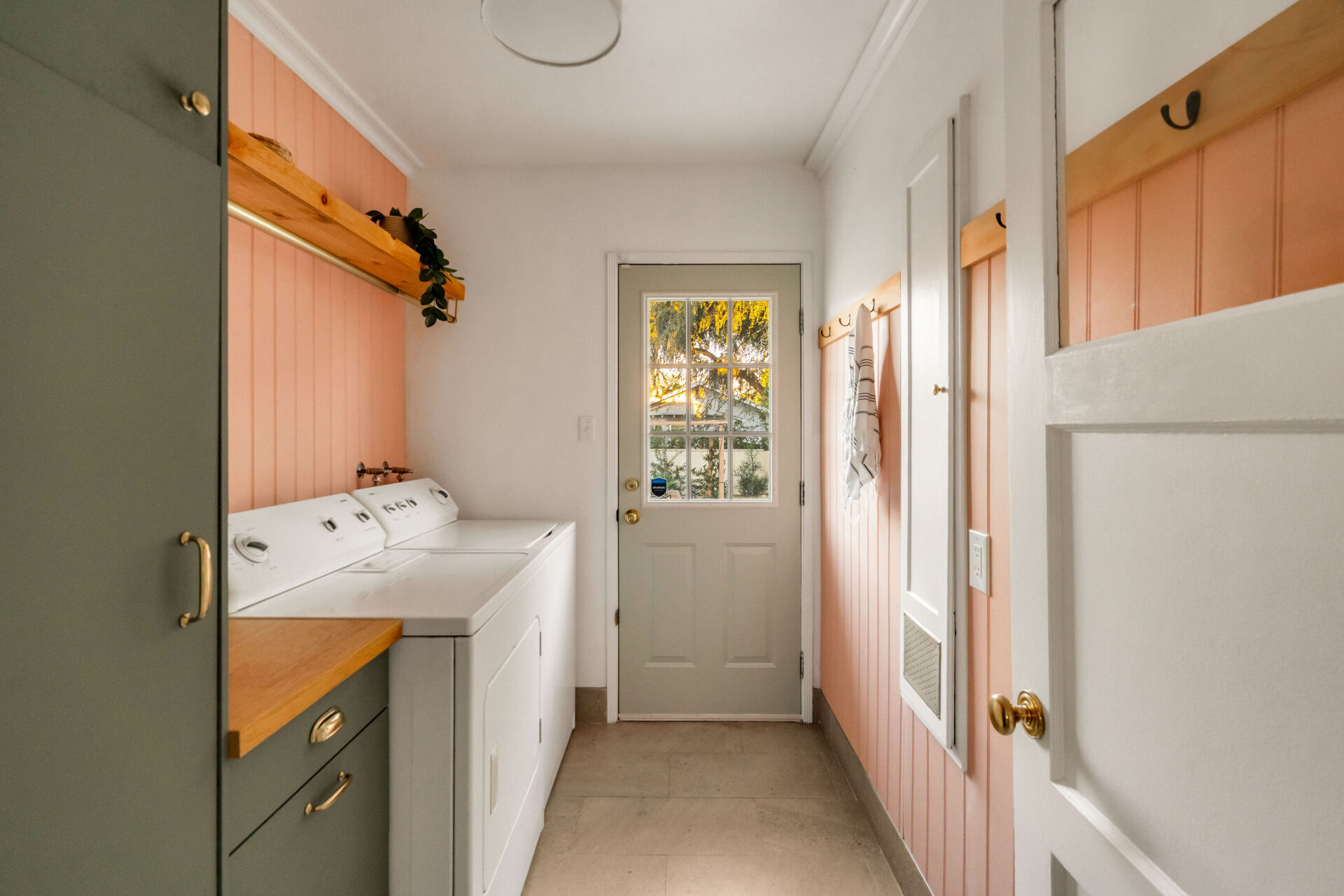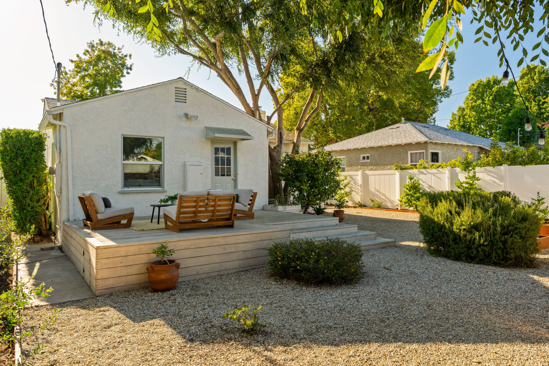 Every inch of this beautifully renovated cottage has been improved with character and style. Step through lush English country garden front yard to the charming front porch–perfect for sipping coffee on a warm Burbank morning. The sundrenched living room invites you with a wood-paneled accent wall, original hardwood floors, modern lighting and cozy decorative fireplace. The kitchen, boasting handsome color accents, quartz counters, Cletile zellige backsplash, under-cabinet lighting, new stainless appliances including range with airfryer, custom cabinets, new brushed brass hardware, and Moen faucets, opens to a charming dining nook with new saltillo tile floors and designer chandelier. 2 ample bedrooms, both with generous closets, share a renovated large hall bathroom boasting custom made vanity, and matte black West Elm designer hardware, blending classic charm with modern simplicity. The laundry room, with its brand new built-in storage, pink paneled wall, and butcher block counter, offers full-size side-by-side washer/dryer and easy access to the large backyard with entertainer’s deck. The soft natural light and flow between spaces give the home a bright, welcoming feel.
