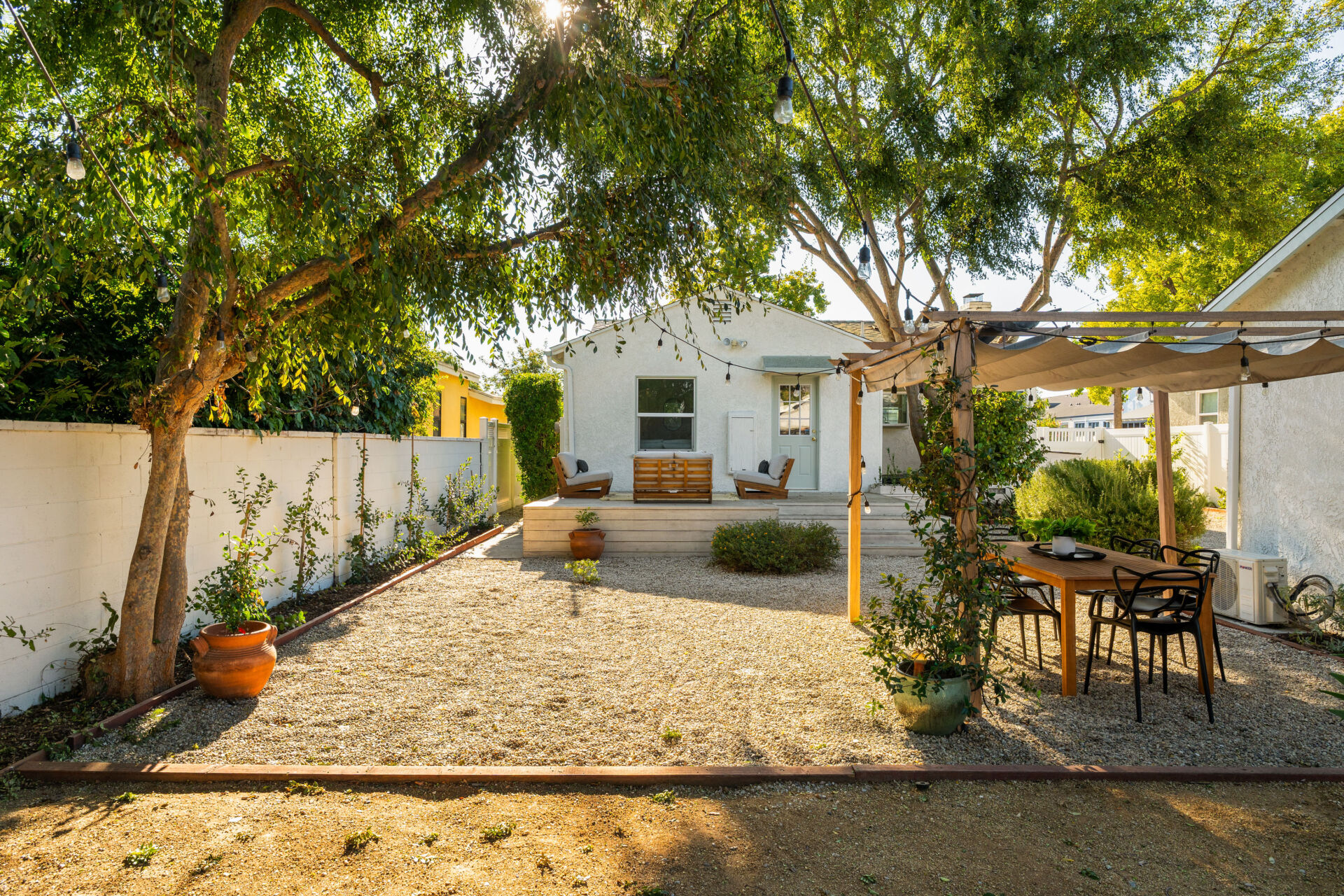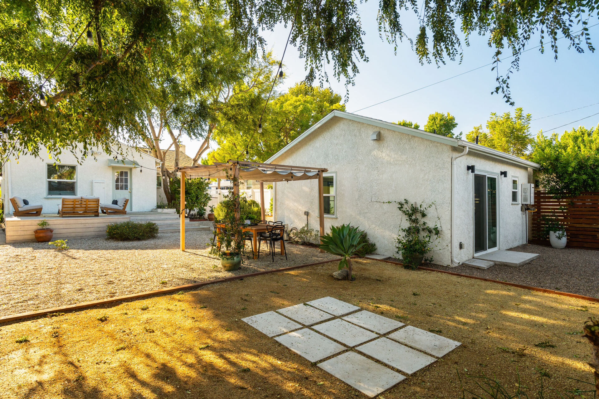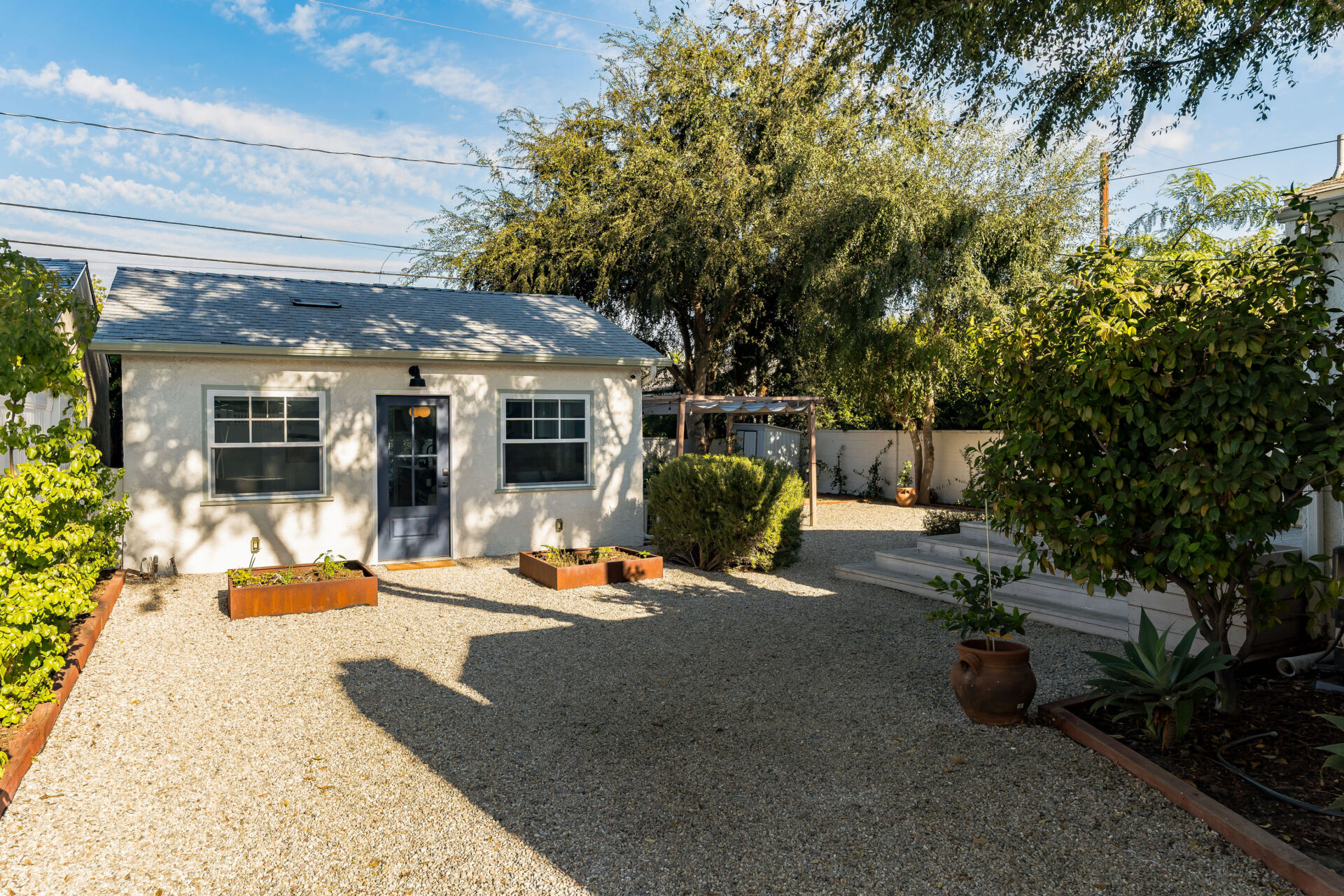 Out back, you’ll find room to grow — a large lot shaded by mature landscaping, ready for backyard barbecues, raised garden beds, or lazy Sunday mornings. The permitted ADU, formerly the garage, is complete with engineered hardwood floors, West Elm lighting, butcher block kitchen featuring new cabinetry, matte black hardware, stainless steel appliances, plus new bathroom featuring walnut vanity, black hex tile shower and condo-size w/d. Enjoy sliding door access to the yard and pergola — perfect for guests, a home office, or rental income to help with the mortgage.
