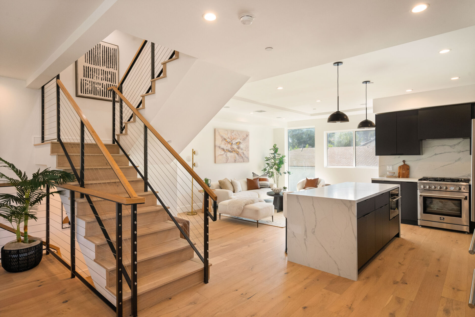 An expansive roof top deck on the upper level has been prepped for you to customize it for premium al fresco living.