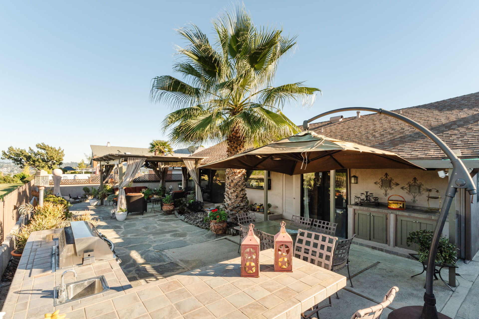 Through the sliding glass doors flows to an expansive sun-drenched patio ideal for morning coffee, golden-hour gatherings, or BBQ celebrations with friends and family.