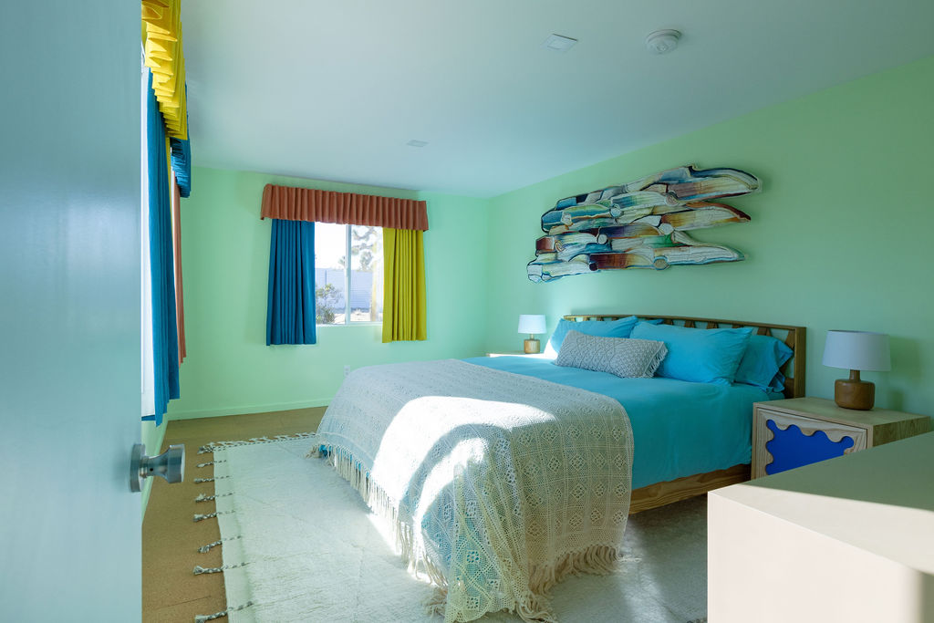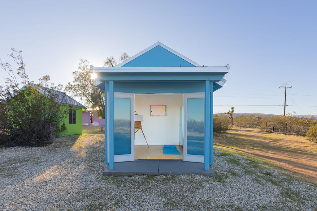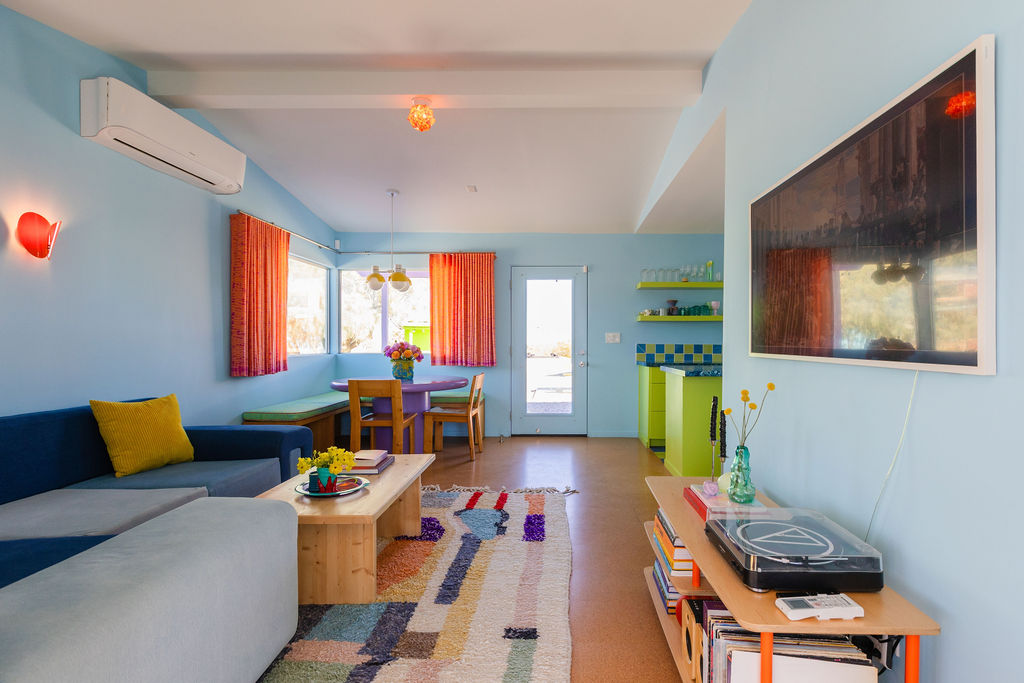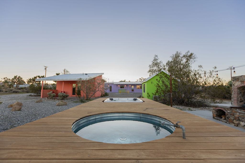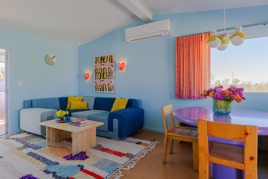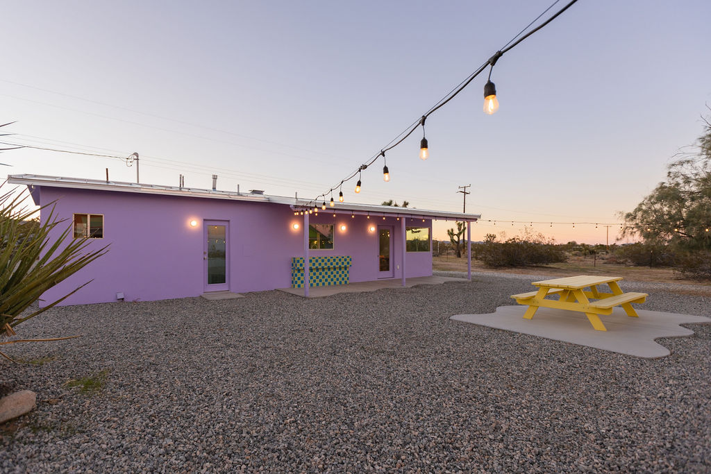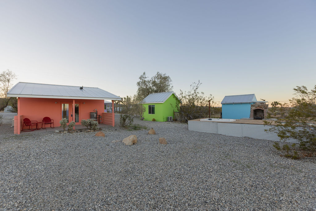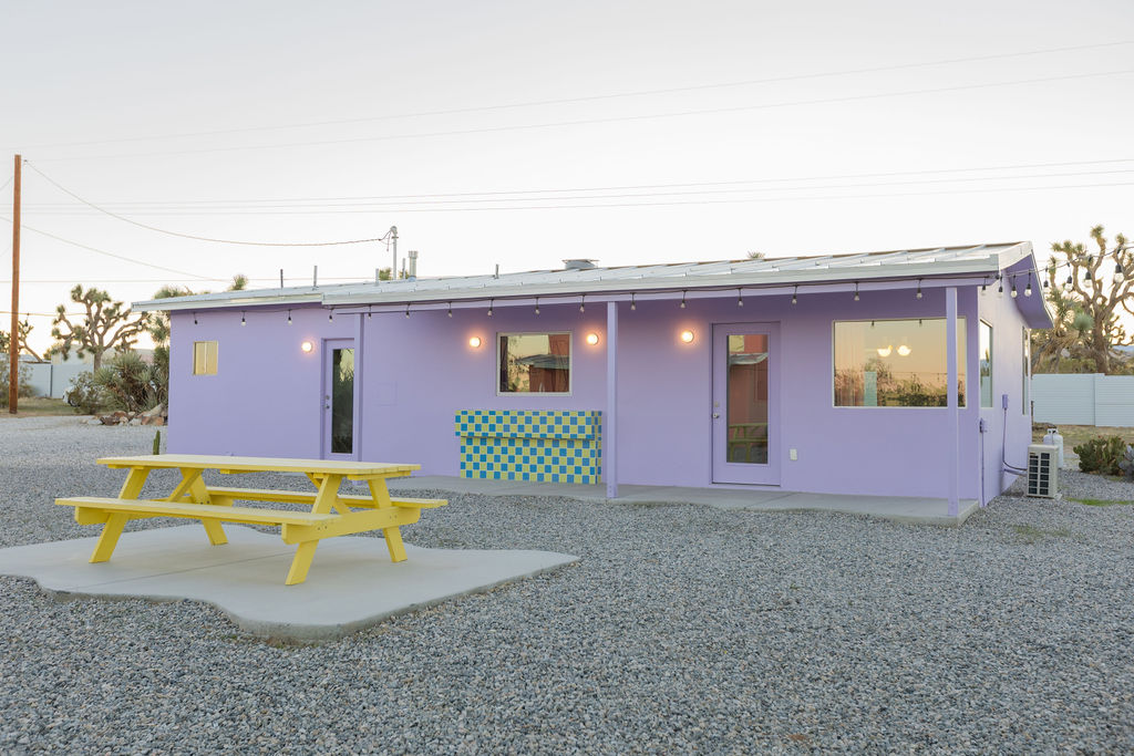 Color-drenched designer compound featured in Elle Decor, Dwell, and Design Milk, Lavender Ranch is a fully reimagined 1957 desert retreat where sunset inspiration and design converge. Los Angeles interior and furniture designer Another Human meticulously reenvisioned these 4 structures, including a 1BD/1BA lavender-hued main house with a bonus room (optional 2nd BD), newly built Studio/1BA permitted ADU “The Bunkhouse” with kitchenette and private patio, and two studio urban sheds—each in its own distinct color—all rebuilt from the studs with new plumbing, electrical, insulation, windows, doors, stucco, and standing-seam metal roofs.