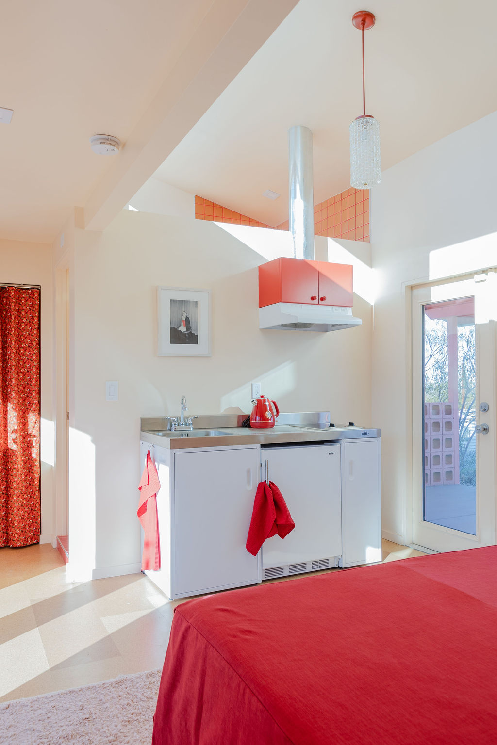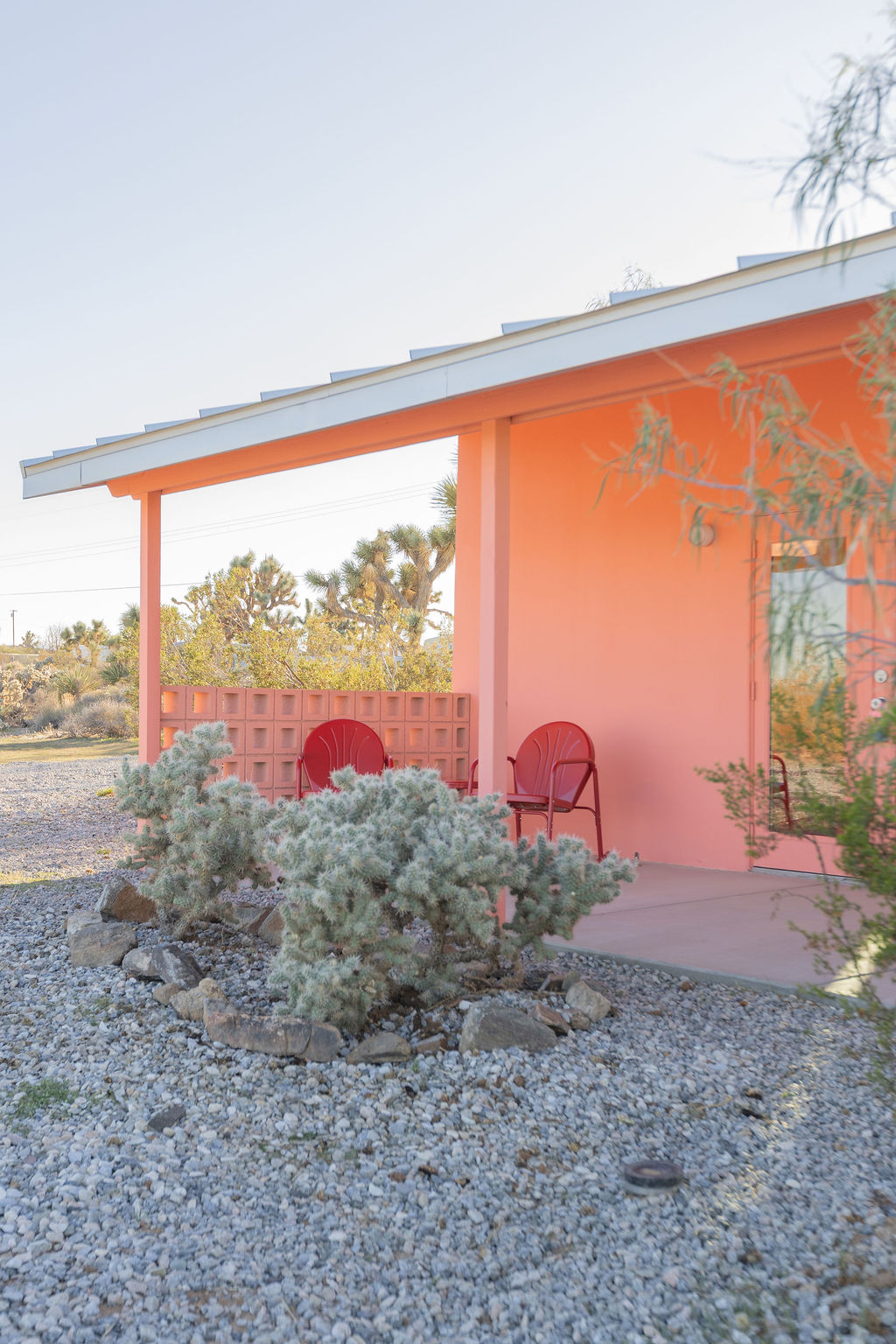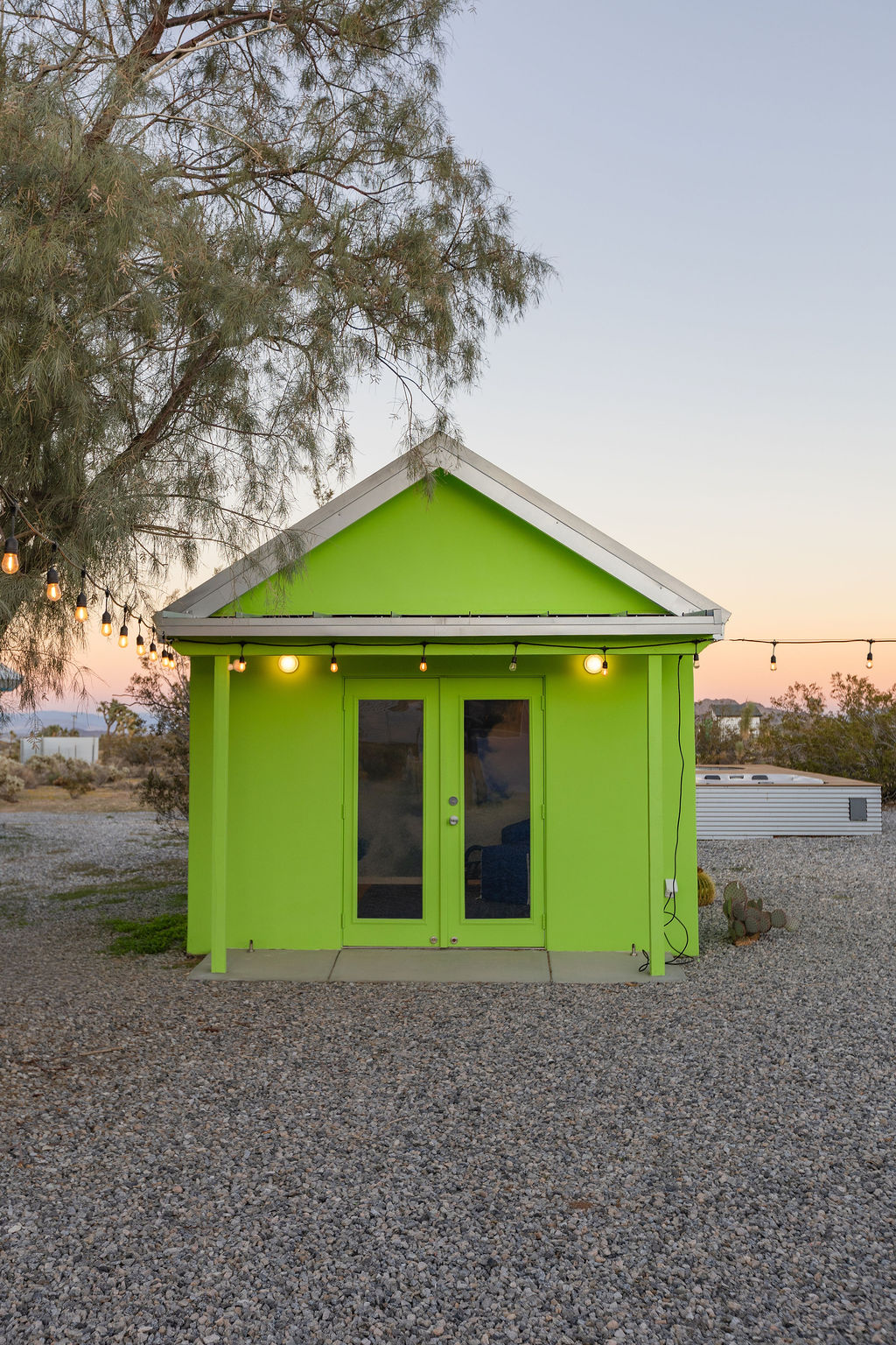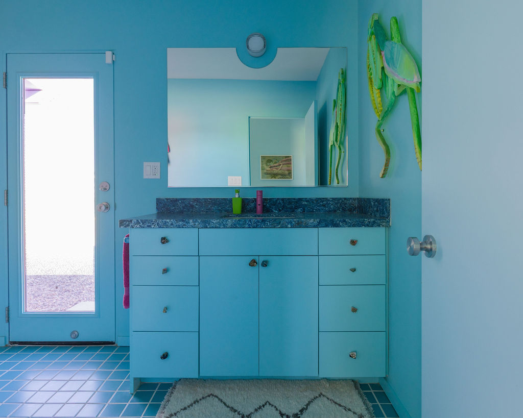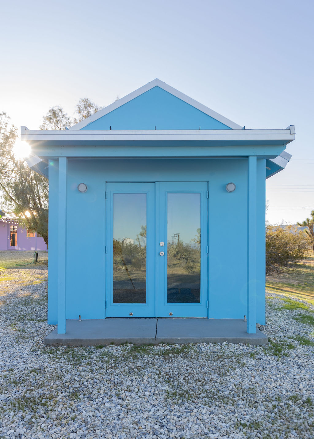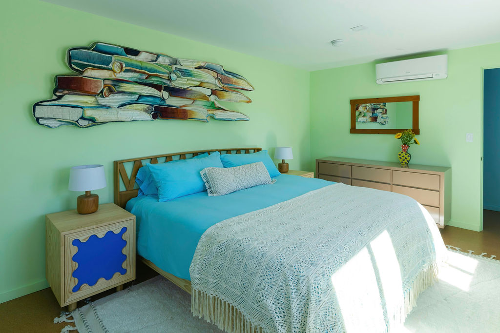 Color-drenched designer compound featured in Elle Decor, Dwell, and Design Milk, Lavender Ranch is a fully reimagined 1957 desert retreat where sunset inspiration and design converge. Los Angeles interior and furniture designer Another Human meticulously reenvisioned these 4 structures, including a 1BD/1BA lavender-hued main house with a bonus room (optional 2nd BD), newly built Studio/1BA permitted ADU “The Bunkhouse” with kitchenette and private patio, and two studio urban sheds—each in its own distinct color—all rebuilt from the studs with new plumbing, electrical, insulation, windows, doors, stucco, and standing-seam metal roofs.