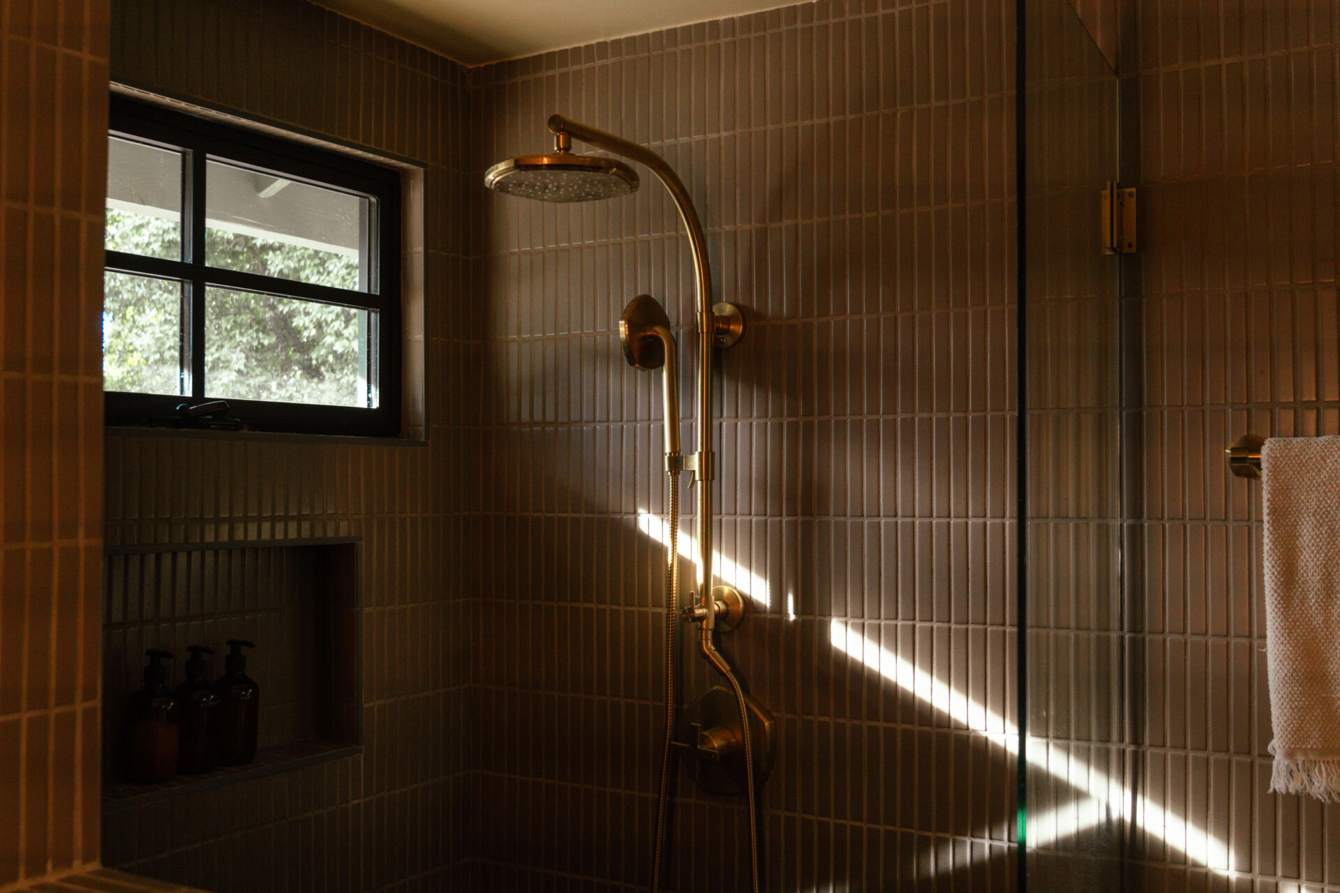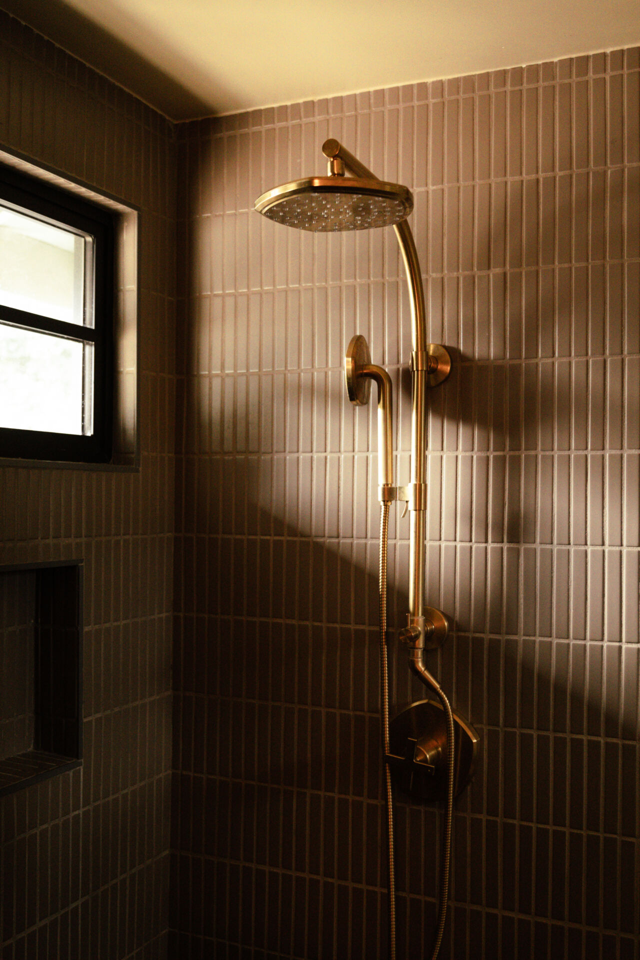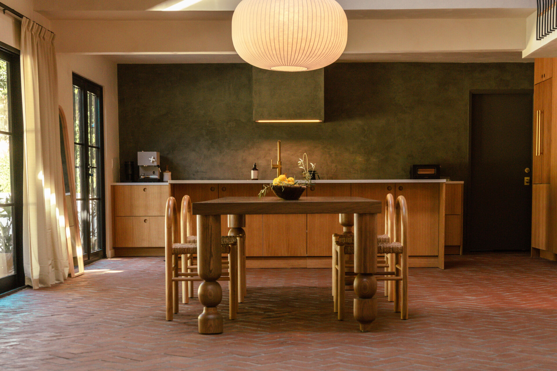 The transformation is comprehensive. A complete infrastructure overhaul includes new electrical and plumbing systems, HVAC, and a tankless water heater, while upgraded insulation and All Weather Architectural aluminum-clad double-pane windows ensure year-round comfort. New skylights draw natural light deep into the interior, illuminating walls finished in Portola limewash paint and Roman clay. Underfoot, the narrative shifts between warm Scandinavian oak hardwood and handmade brick floors, a textural dialogue that anchors the home’s material authenticity.