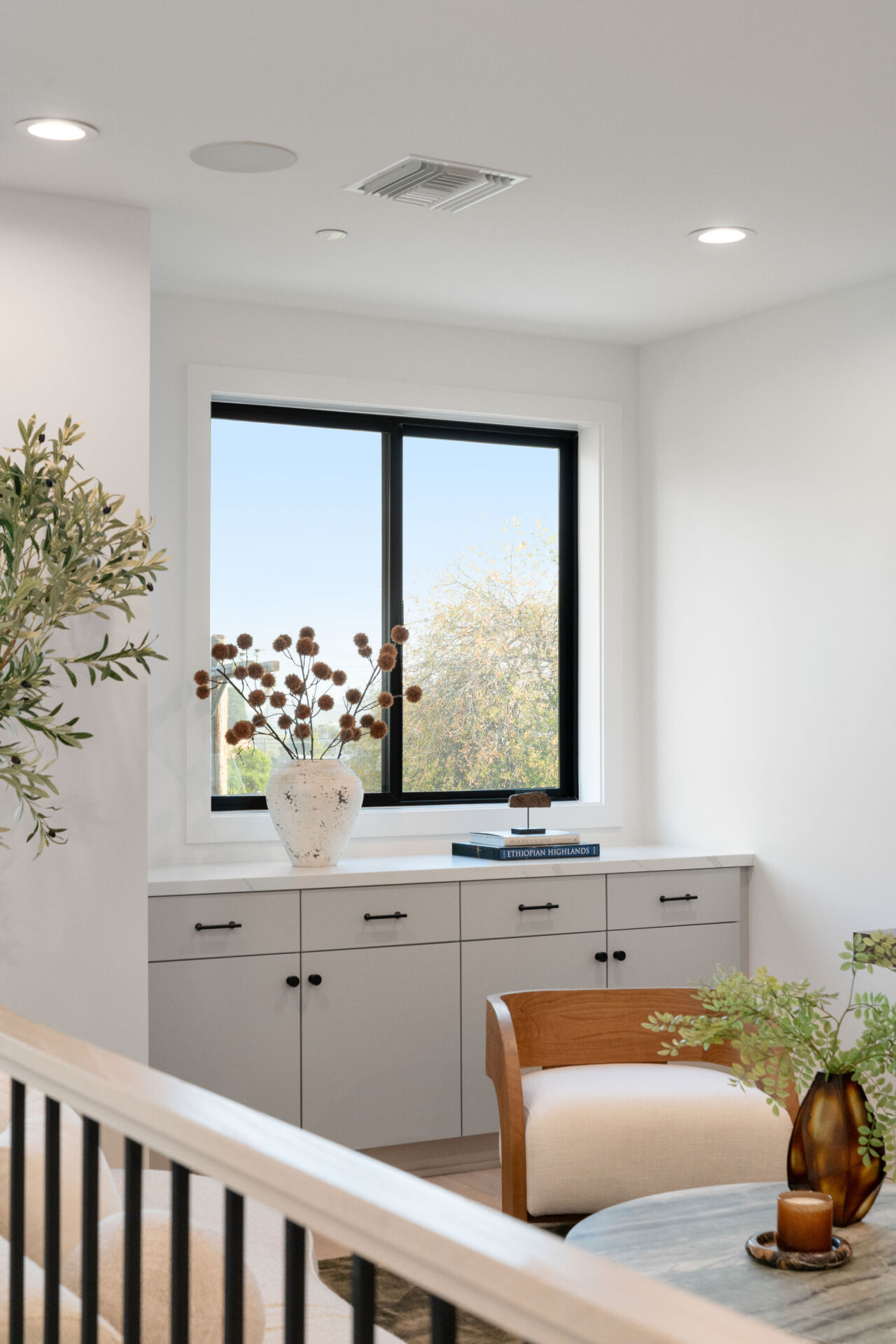 The main level also includes an office nook and an additional bedroom with a full bath, providing versatility for work or guests. Upstairs, the home reveals a serene primary suite, two additional bedrooms, a family lounge, and a generously sized laundry room complete with built-in cabinetry and sink. The showstopping primary retreat is a true sanctuary, featuring an expansive walk-in closet and a spa-like bath with a freestanding soaking tub, dual-sink vanity, and oversized walk-in shower.