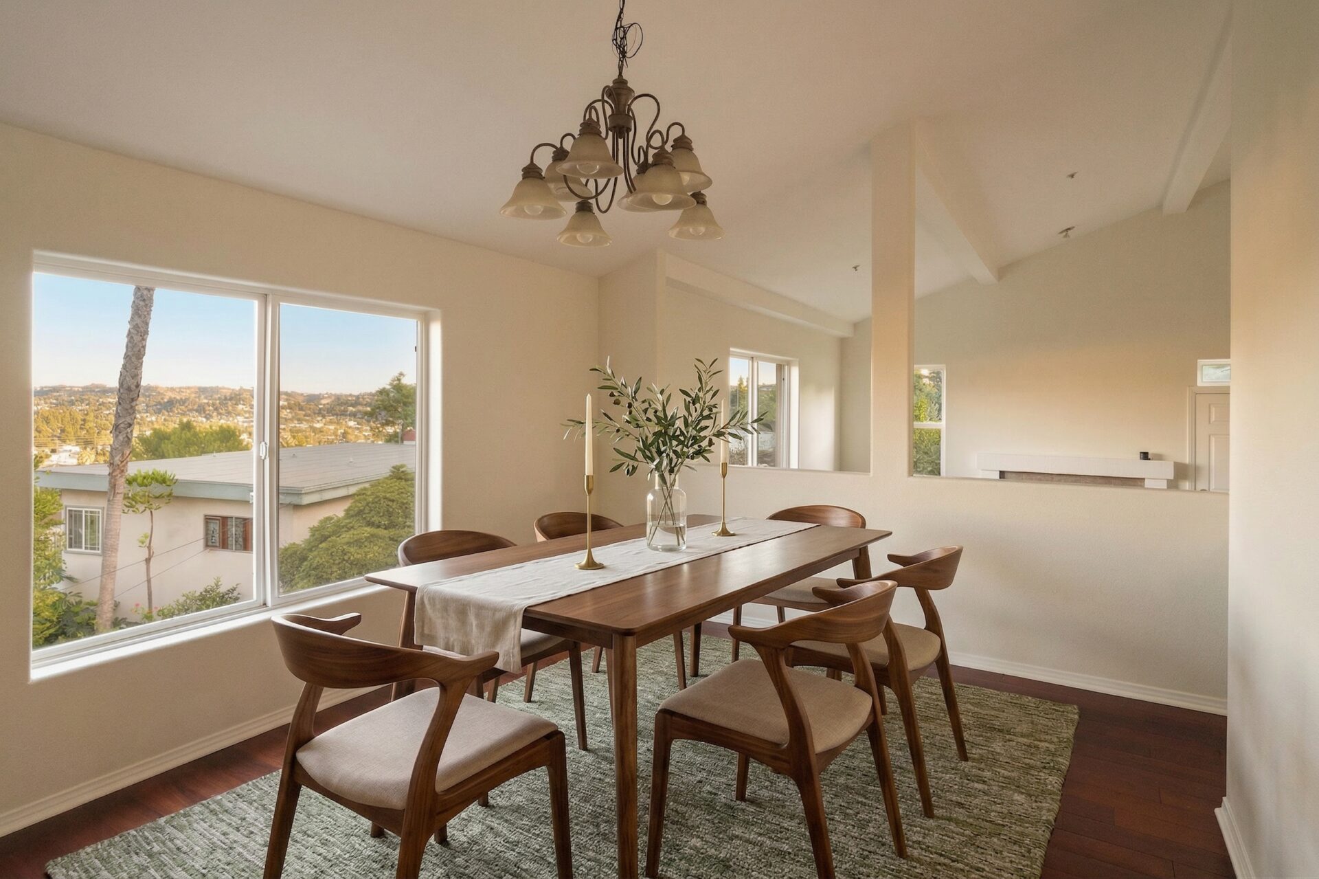 The thoughtful layout provides room for everyone; three of the four generously sized bedrooms feature en-suite bathrooms, flexible living areas, and seamless flow between indoor and outdoor spaces with al fresco dining areas and multiple balconies, perfect taking in dramatic canyon and city vistas of Occidental College and the famed Eagle Rock.